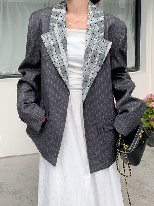 レースカラーグレーストライプジャケット TK0340