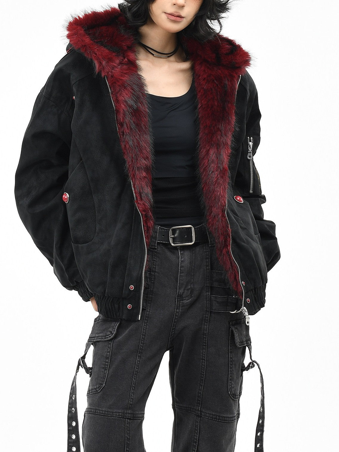 レッドインナー ファーフーディージャケット TK0372