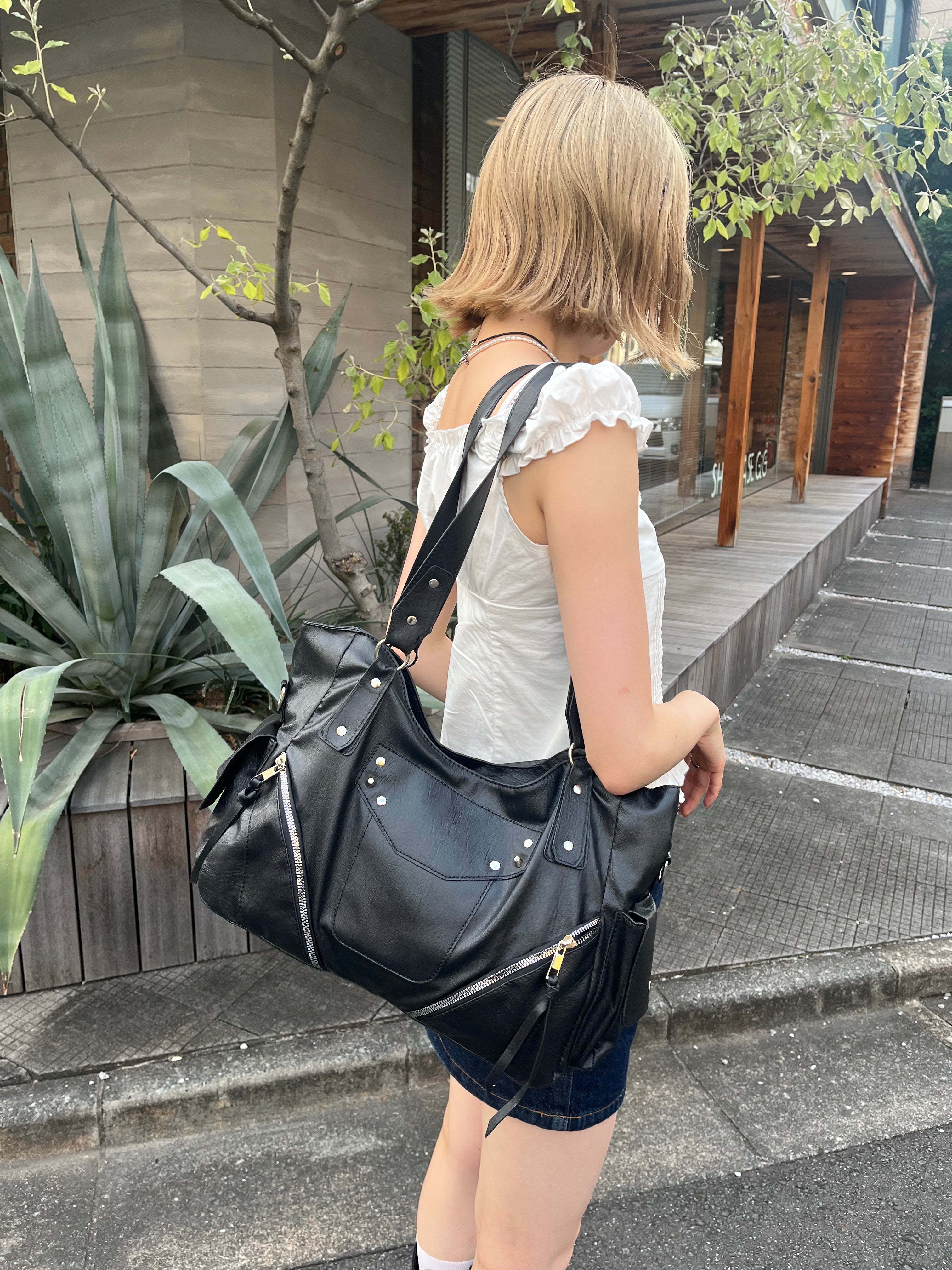 商品説明:甘辛ミックスなバイカーデザインで、通勤にも使える高見えトートバッグ。肩掛け可能で実用性も抜群。 サイズ:横36cm 高さ28cm マチ12cm通常価格 ¥5,610セール価格 ¥5,610 通常価格単価 あたり -