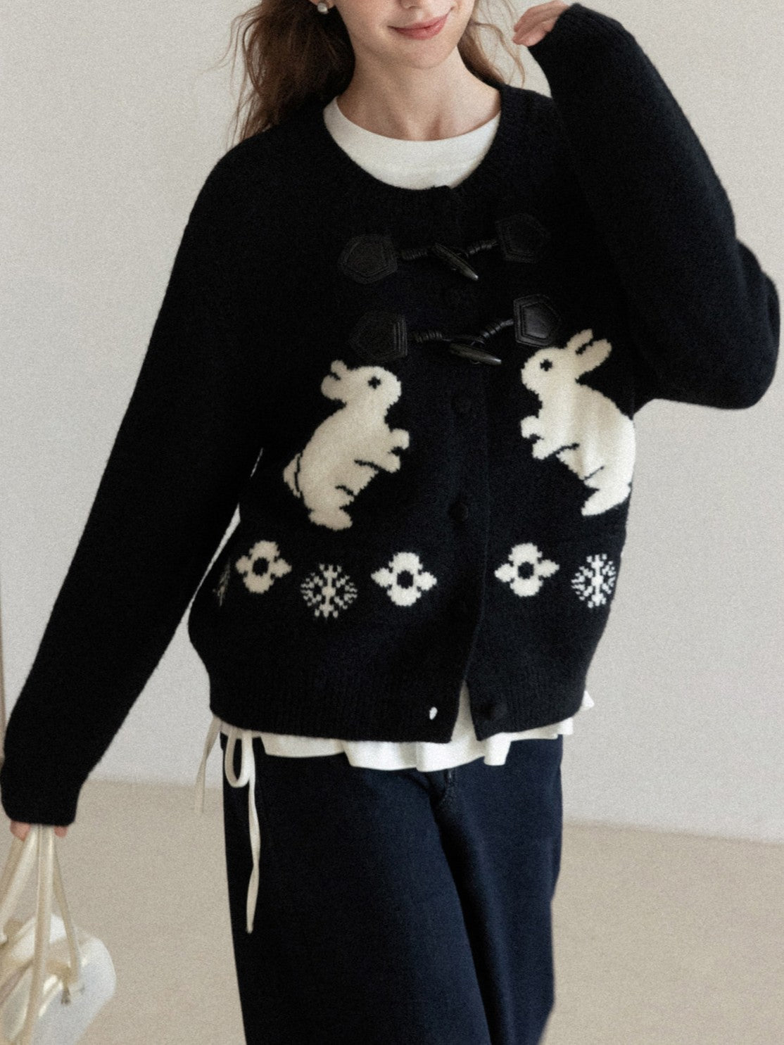 ウサギ刺繍トグルボタン ニットカーデ TK0345