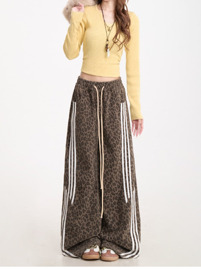 ヒョウ柄 切替ストライプイージーパンツ TK0365