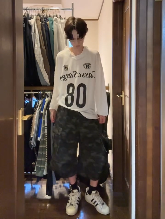 「asparabe_kon」 迷彩柄クロップドカーゴパンツ TK0136