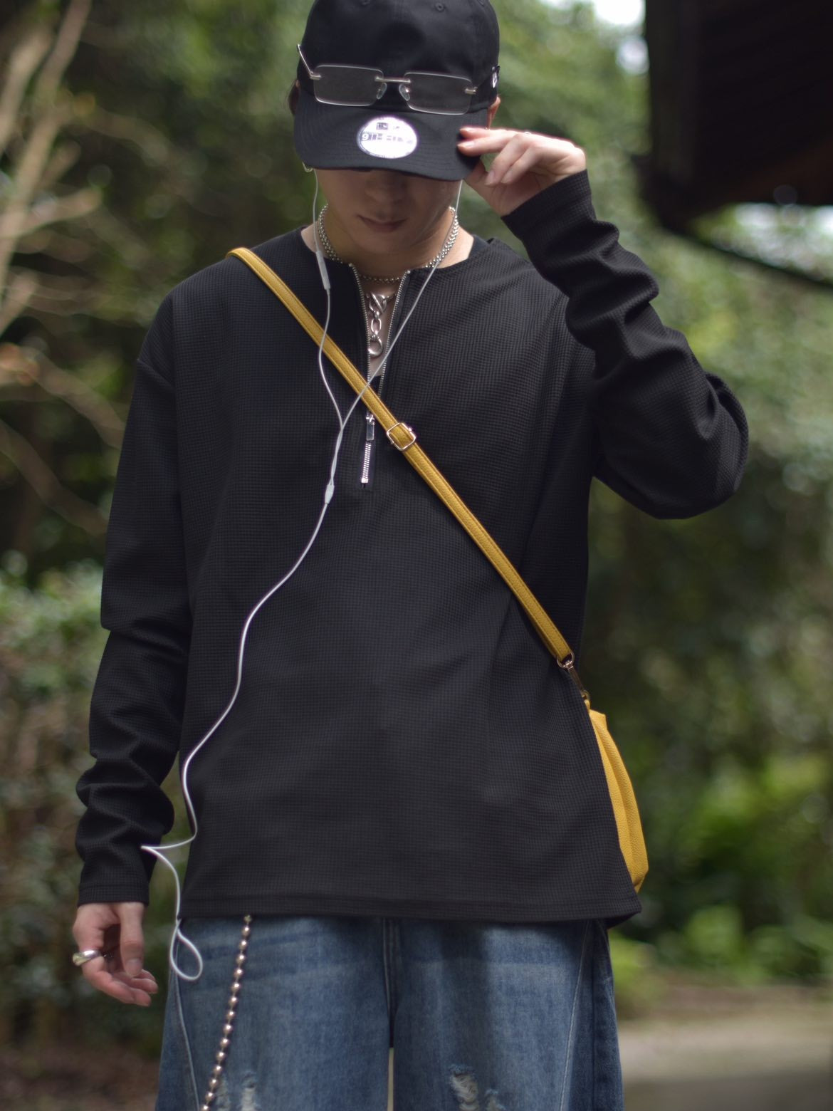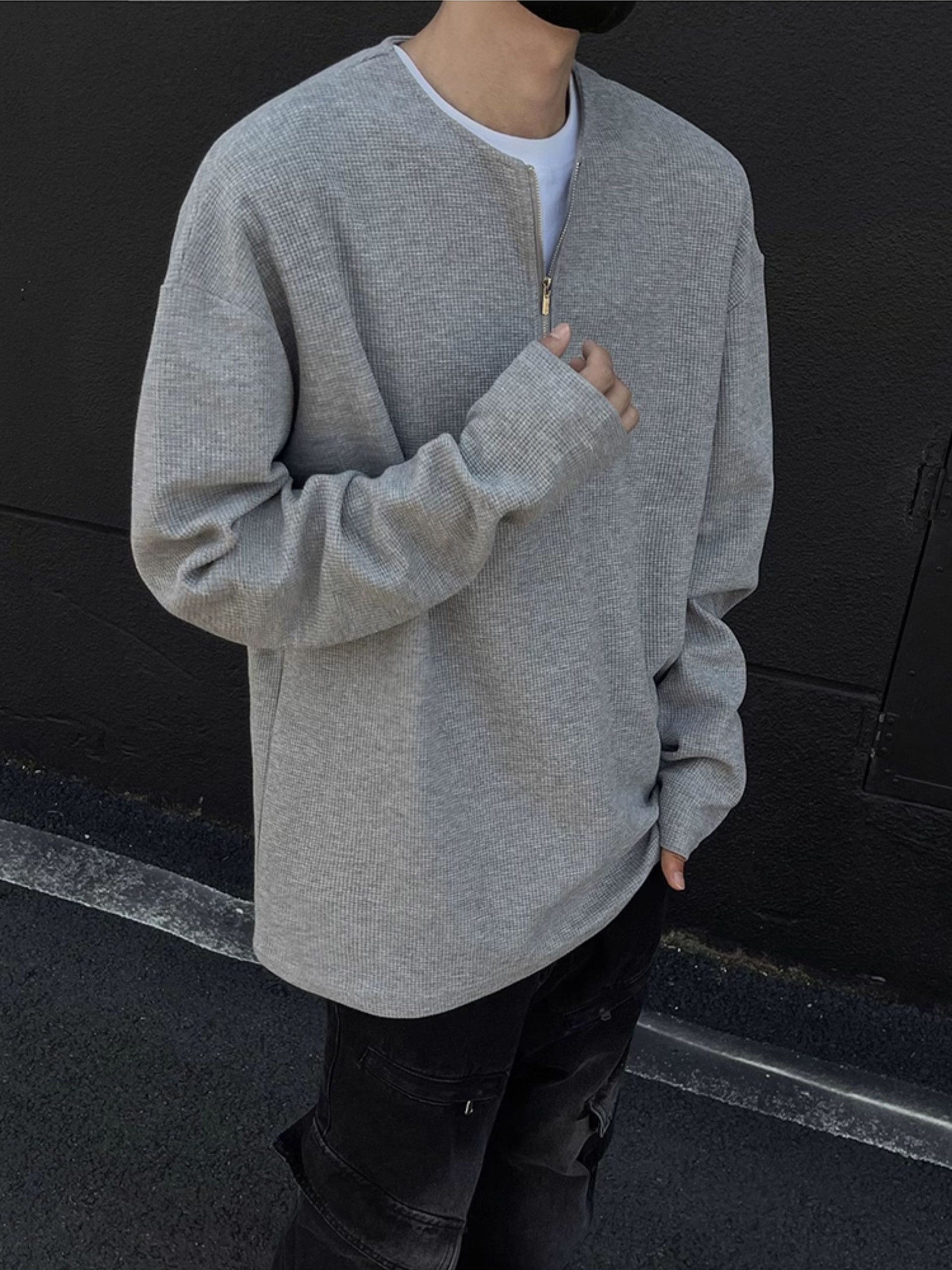 「kumagai」ワッフル編み ハーフジップ 長袖Tシャツ TK0052
