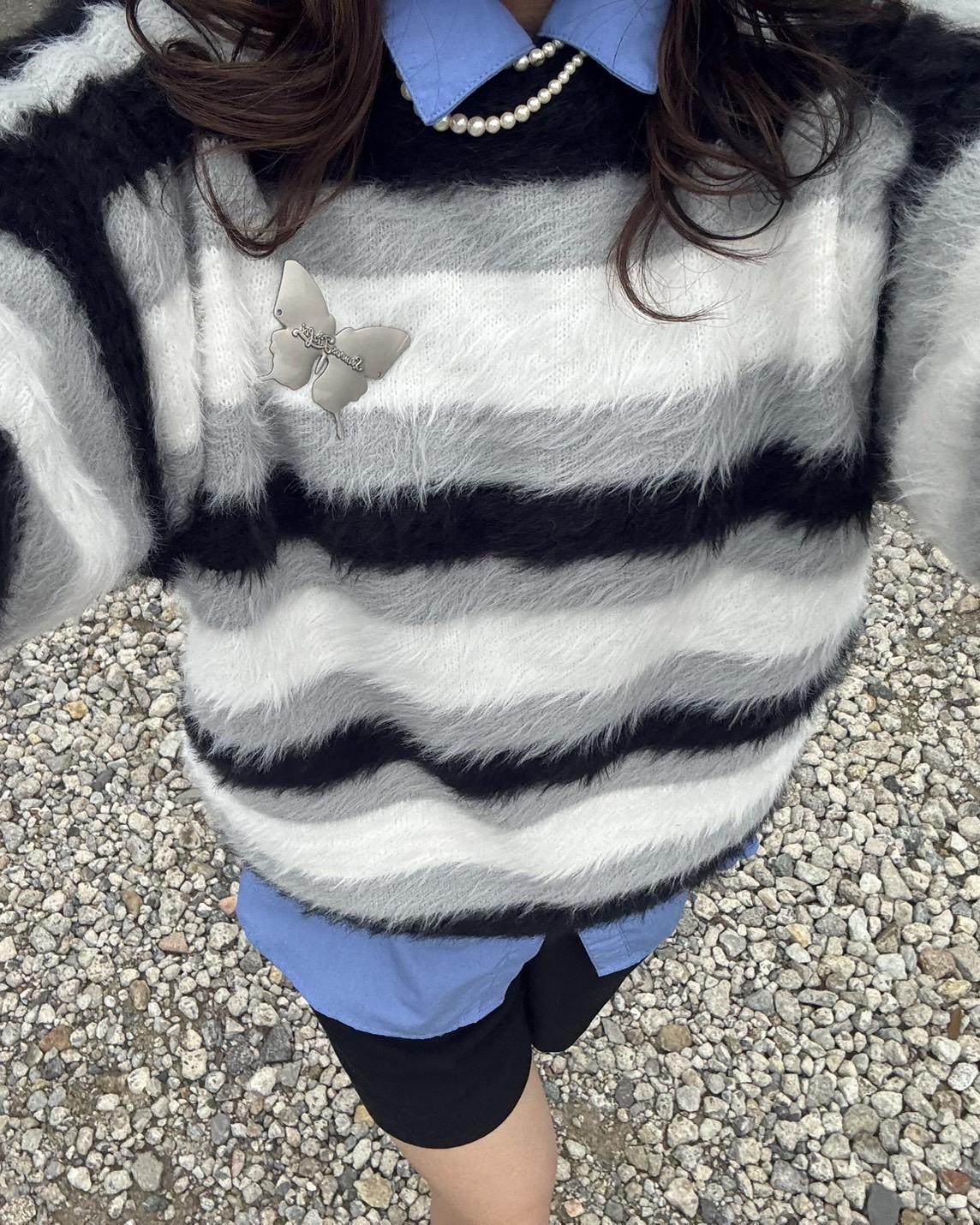 商品説明:ふんわり柔らかいボア素材のニット。ゆったりしたオーバーサイズシルエットで、カジュアルスタイルやおうち時間にもぴったり。ボーダーデザインがアクセントになり、韓国風のトレンド感をプラス。デイリーコーデに取り入れやすい一枚です。
