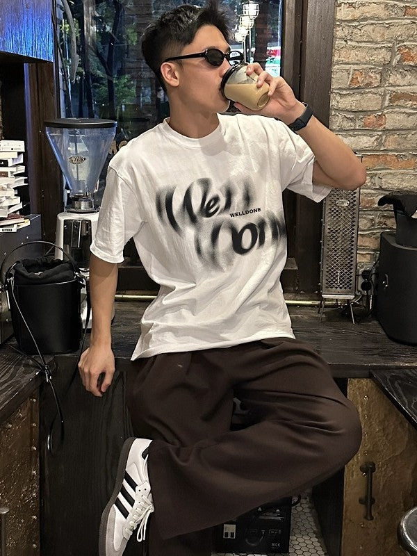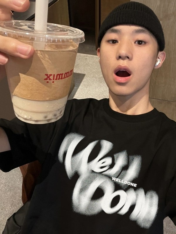 商品説明:「Welldone」のロゴが印象的な一枚。シンプルな黒地にアート感ある文字が映え、カジュアルながらもスタイリッシュな雰囲気を演出。
