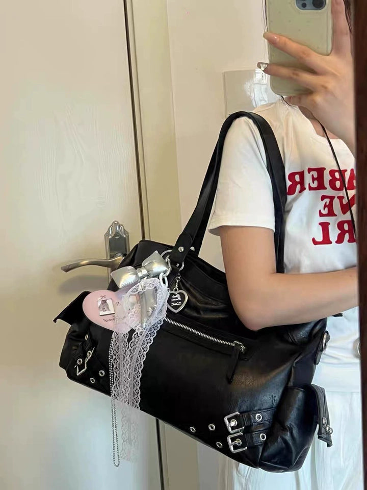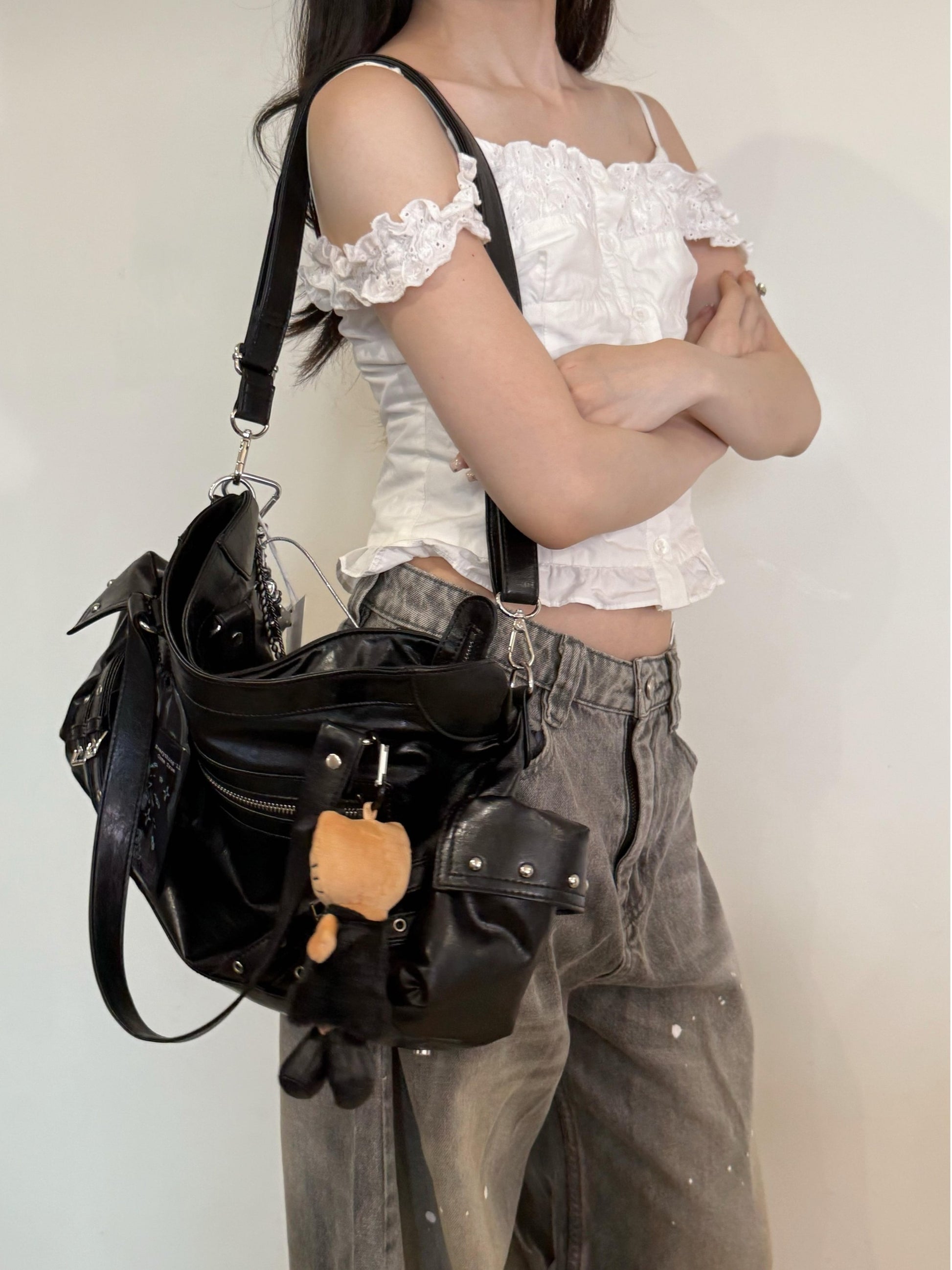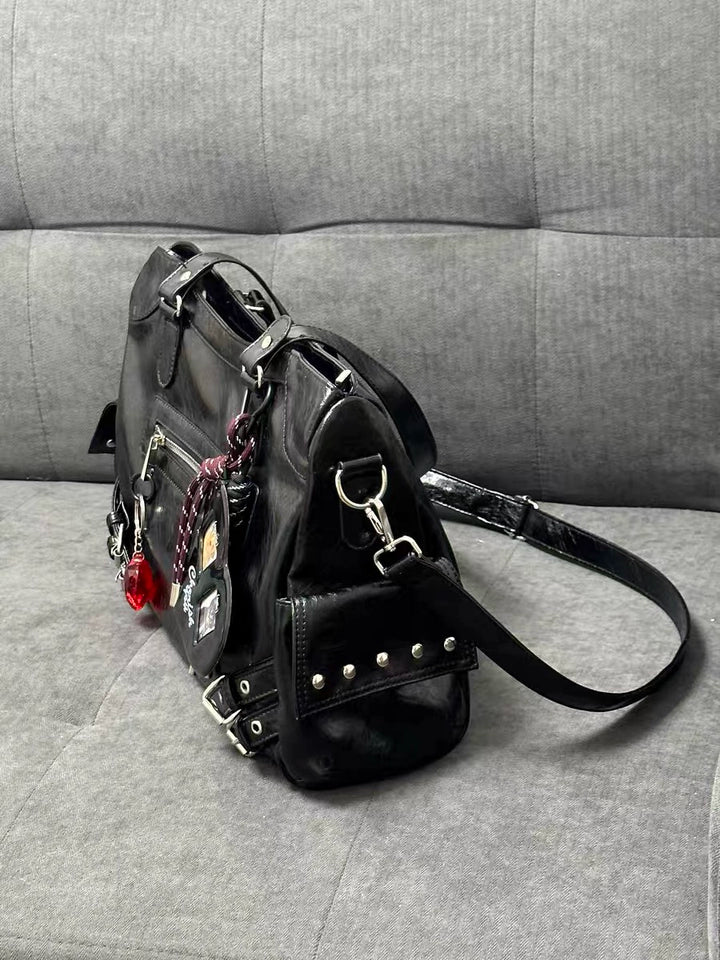 商品説明:ツヤのある合成皮革でコーデのアクセントに。長36cm×幅12cm×高31cmの大容量で書類も収納可。肩掛けしやすい持ち手と斜め掛け対応で通勤・通学から休日のお出かけまで活躍。内ポケット付きで小物整理も◎。 *付属品なし
