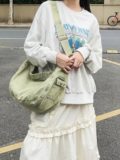 商品説明:洗い加工を施したレトロな帆布素材のトートバッグ。ファッション性と実用性を兼ね備えた大容量で、カジュアルなコーディネートにぴったり。肩掛けでも斜め掛けでも使える、リラックスしたスタイルに最適です。ワンショルダー・斜め掛け OK