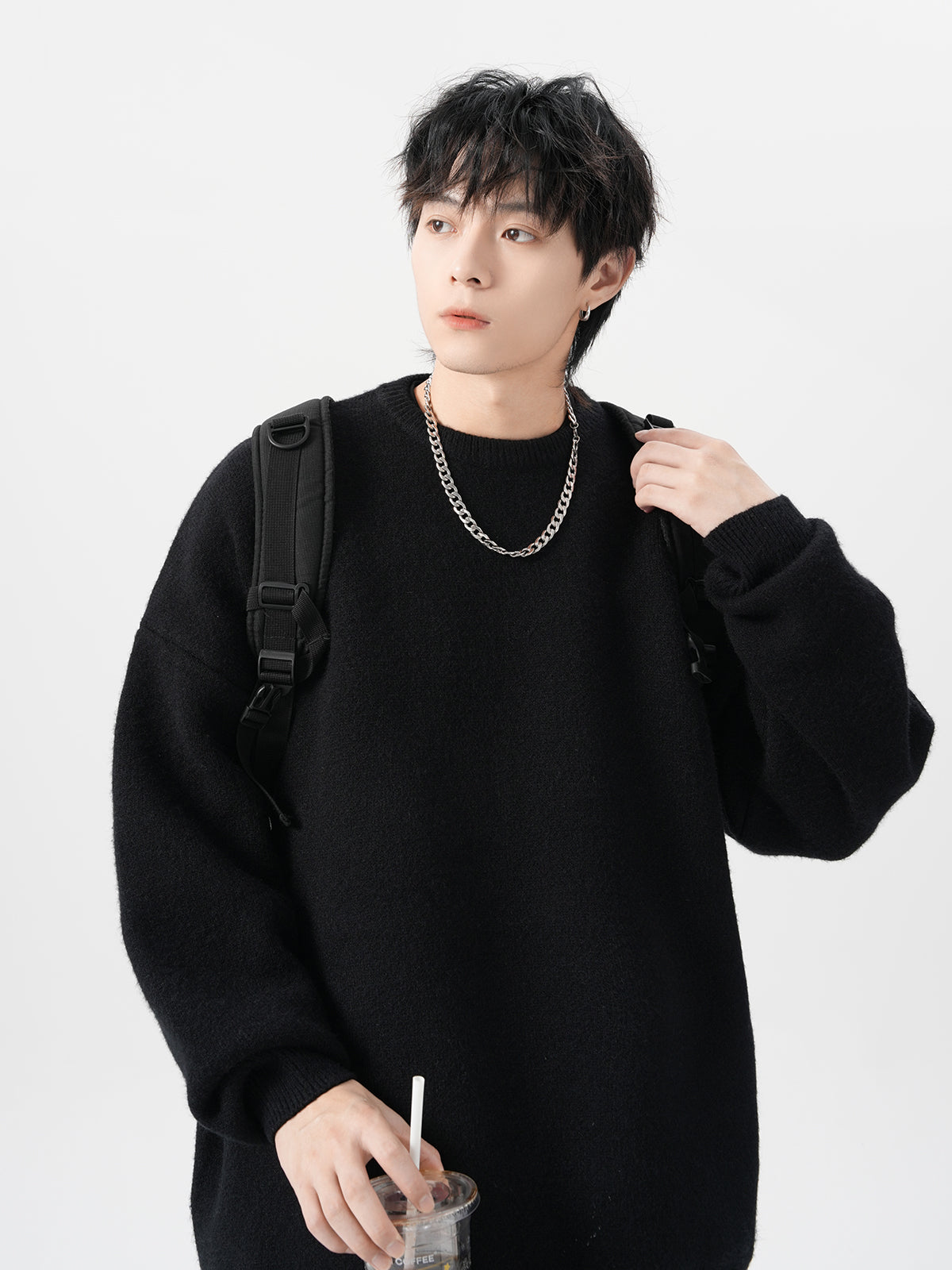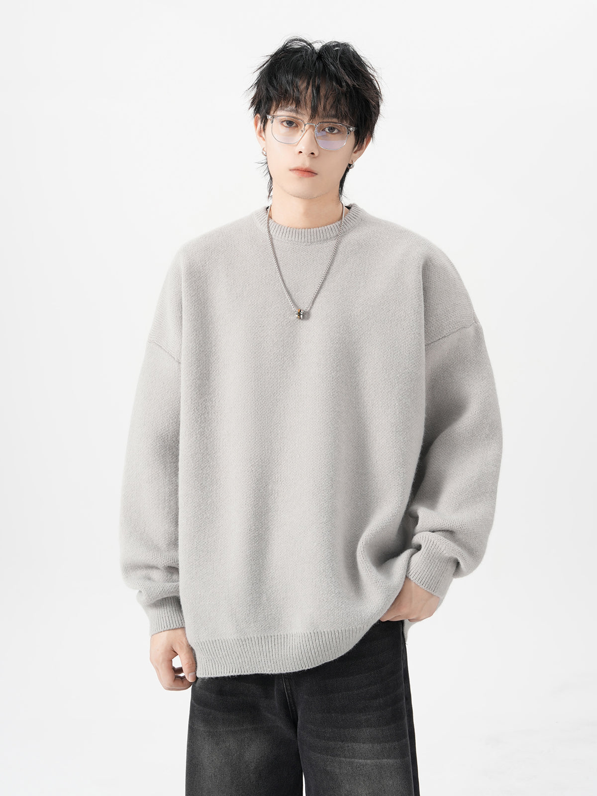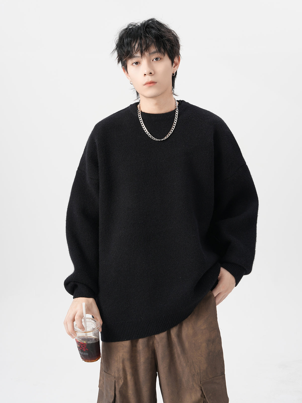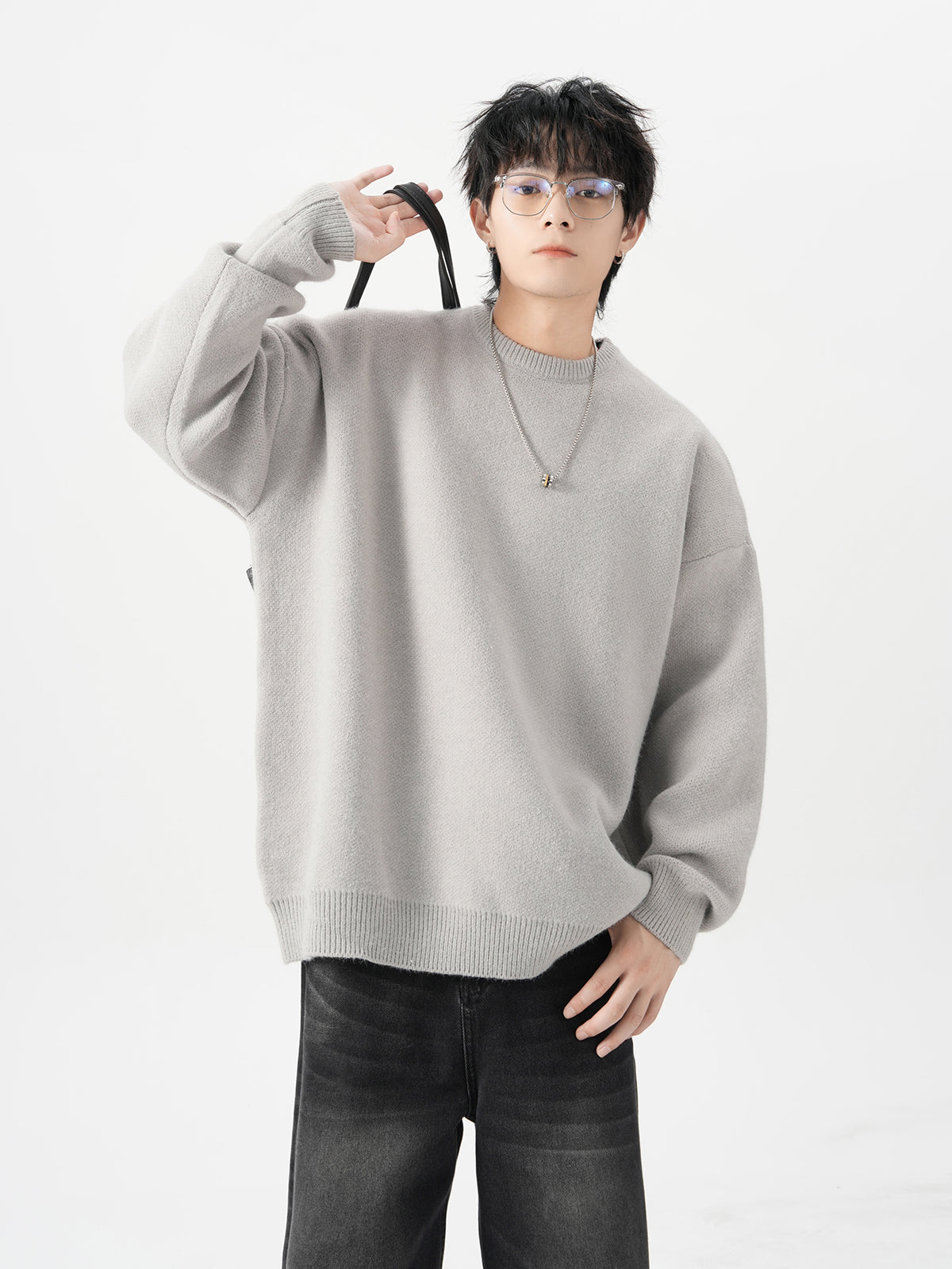 「3色展開」カジュアル無地ニットプルオーバー TK0293