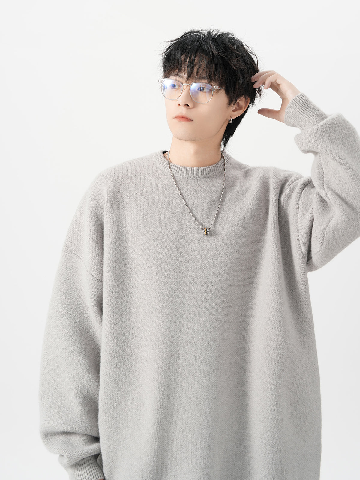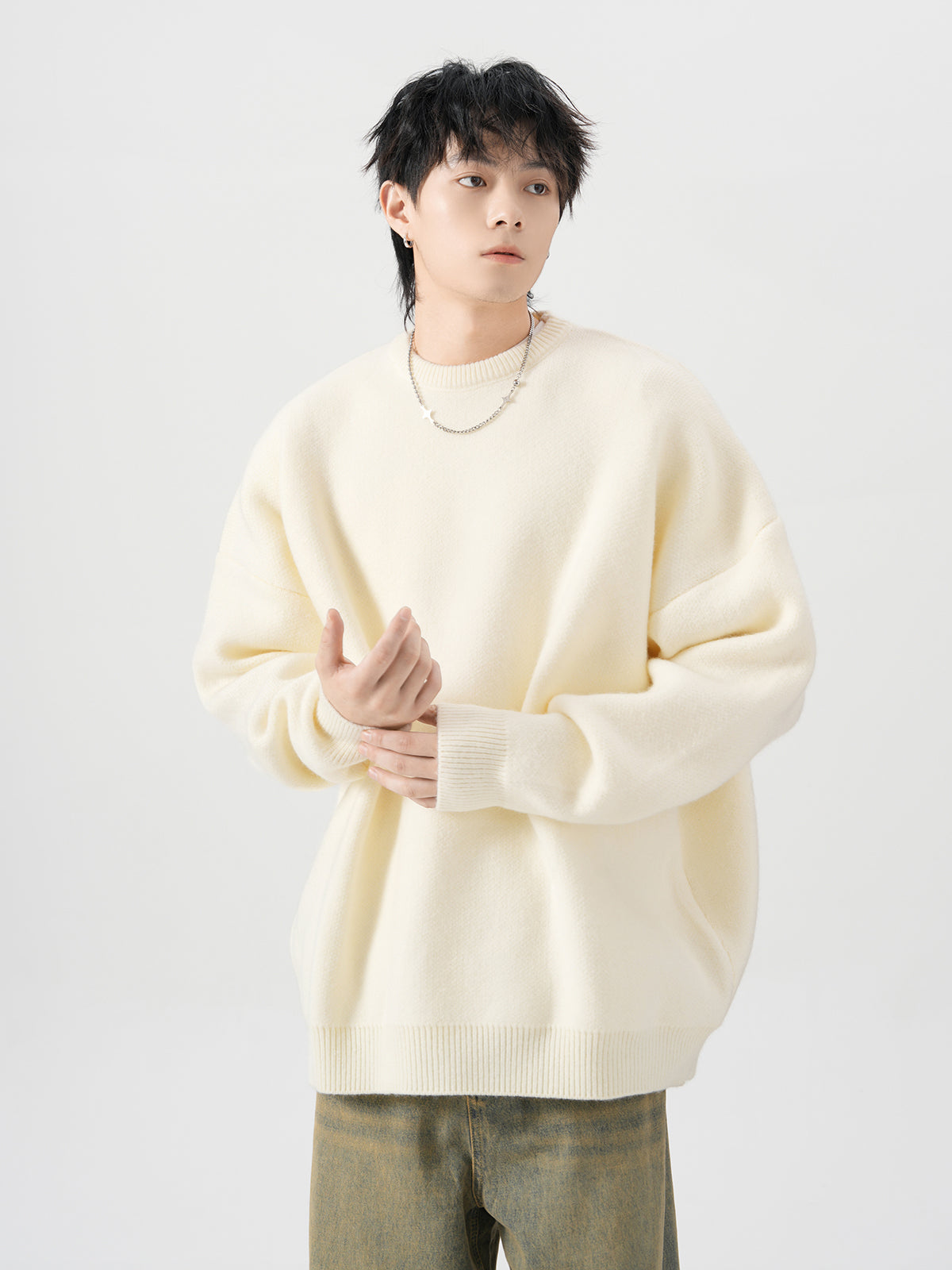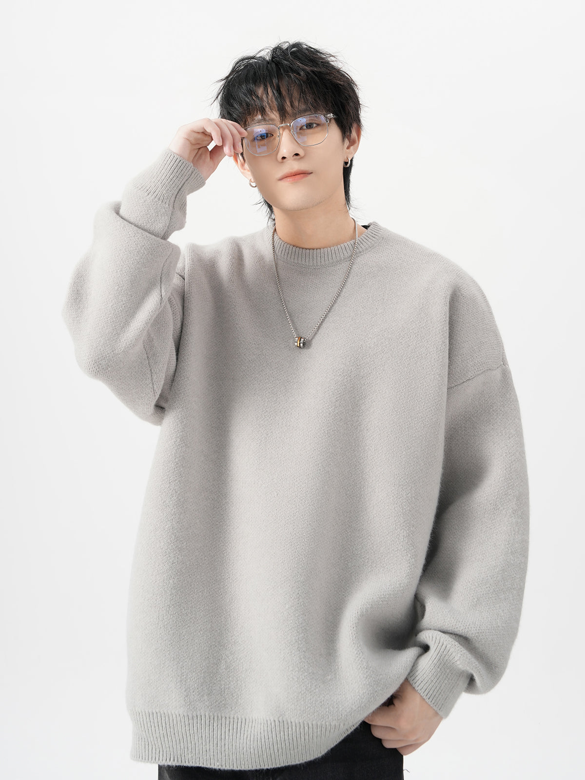 「3色展開」カジュアル無地ニットプルオーバー TK0293