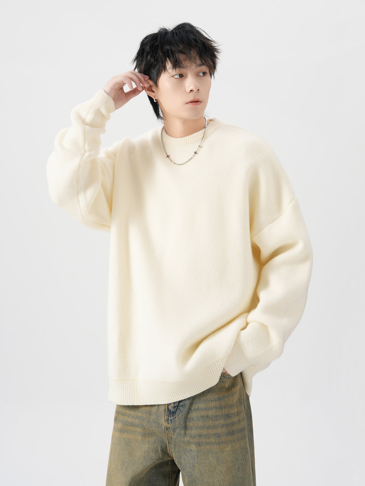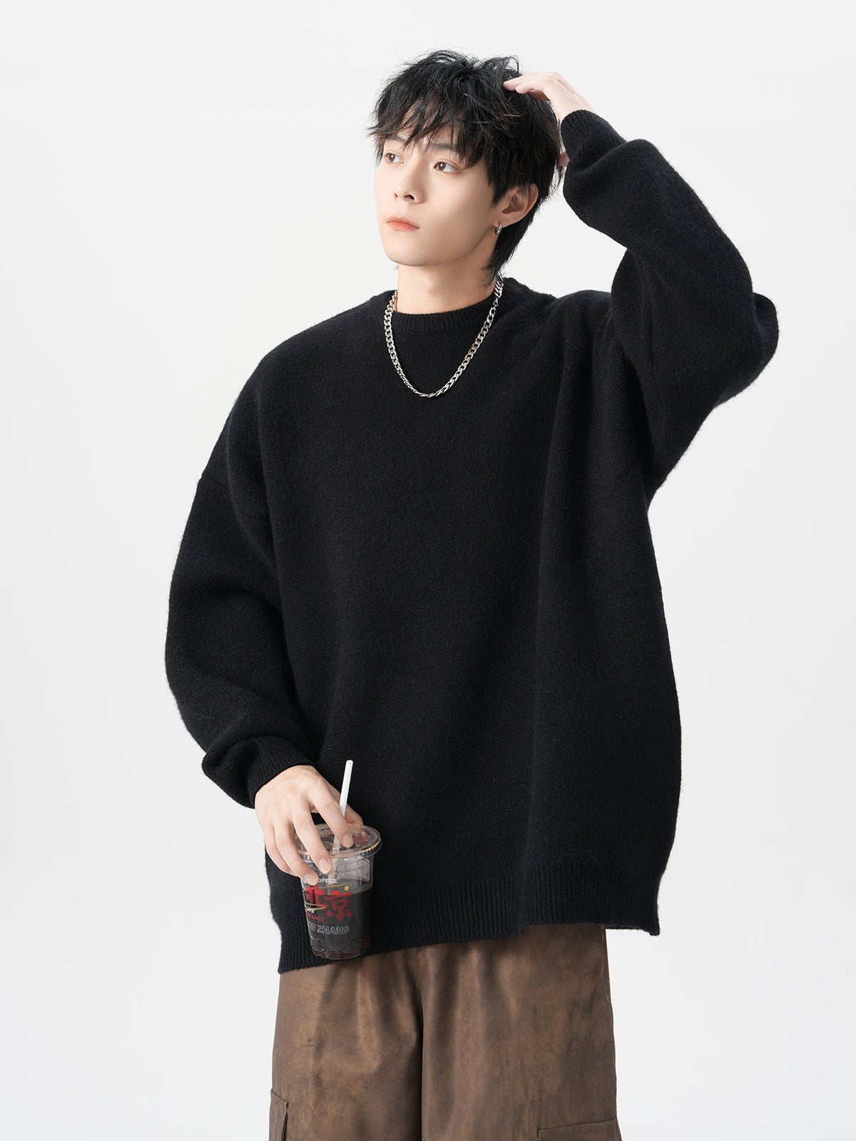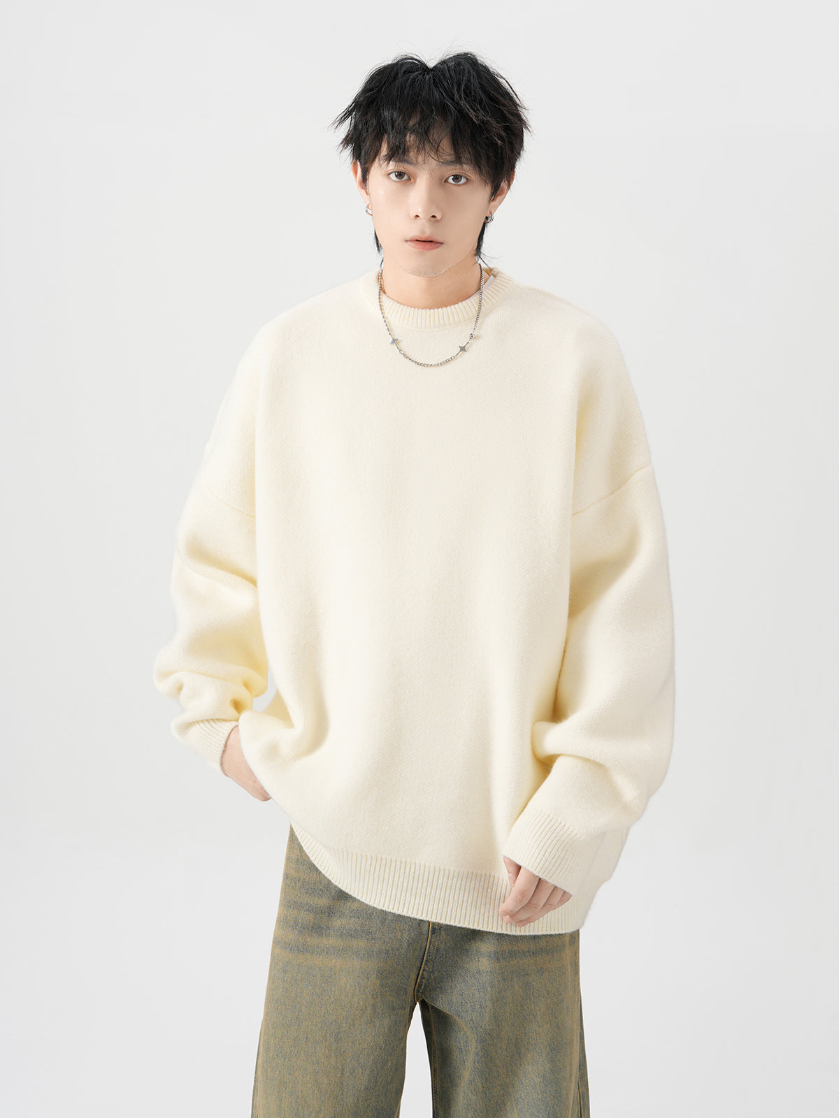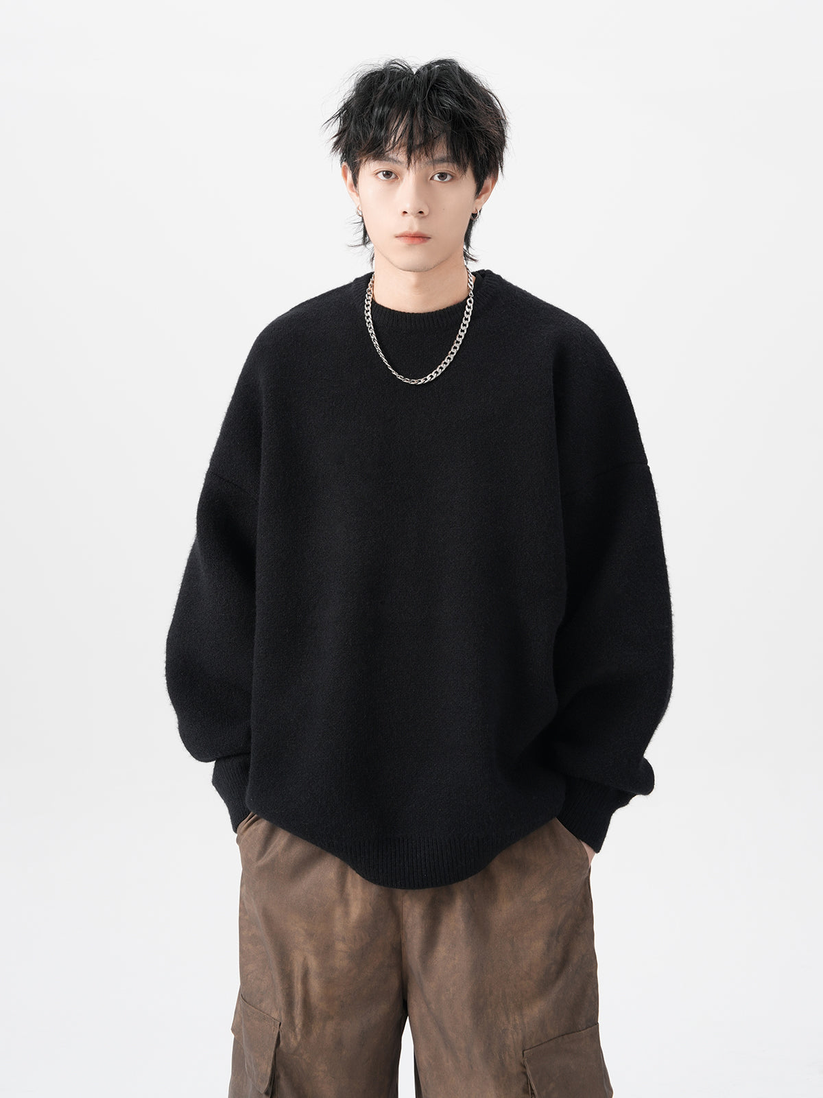 「3色展開」カジュアル無地ニットプルオーバー TK0293