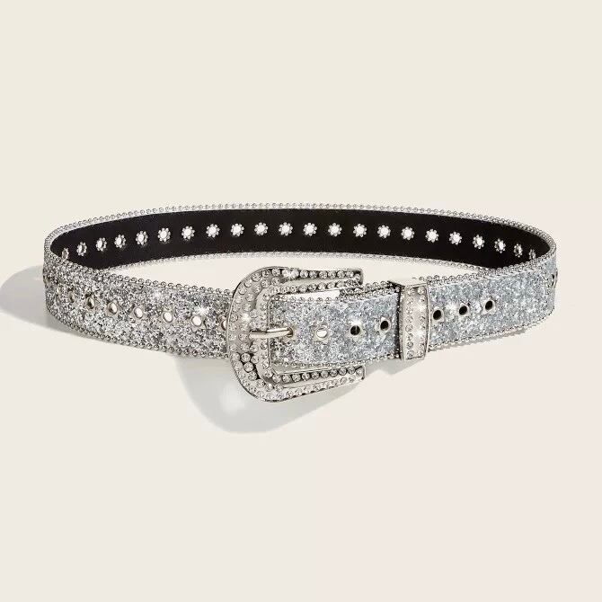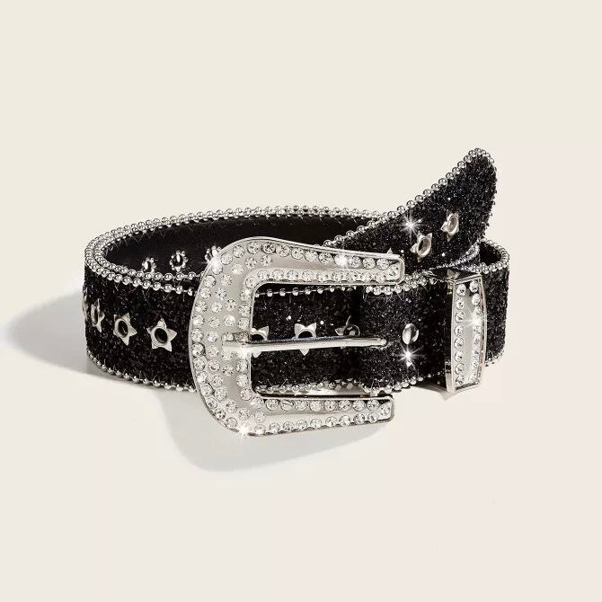 商品説明:夏コーデに輝きをプラスする、小粒ラインストーンがアクセントのワイドベルト。シルバー&ブラックの2色はどちらも“映え”抜群!Tシャツからワンピまで、合わせるだけでおしゃれ度UPの万能アイテム♡