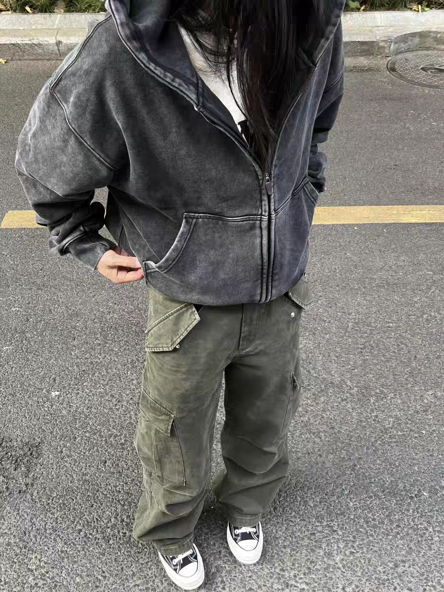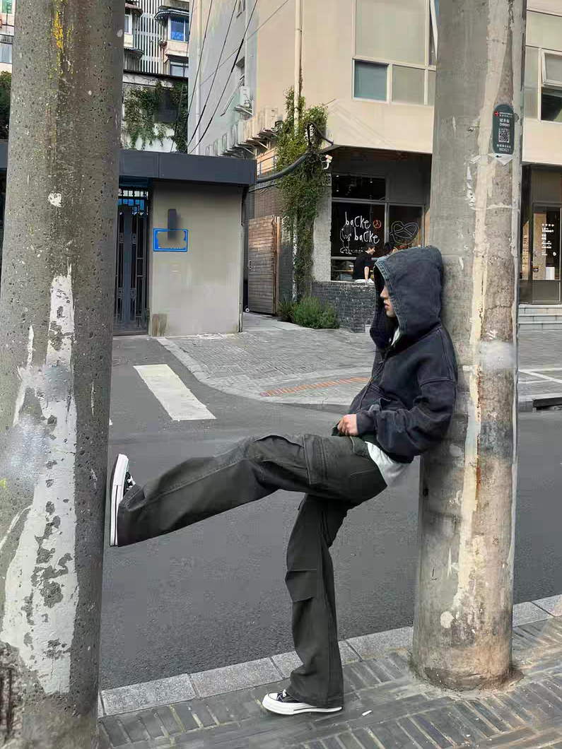 商品説明:重厚感のあるしっかりとした純コットン生地を使用したクリーンフィットのフード付きスウェット。深灰色のシンプルなデザインで、秋冬のカジュアルコーデにぴったり。ゆったりとしたシルエットでリラックス感があり、デニムやジョガーパンツと合わせて楽に着こなせる一枚です。