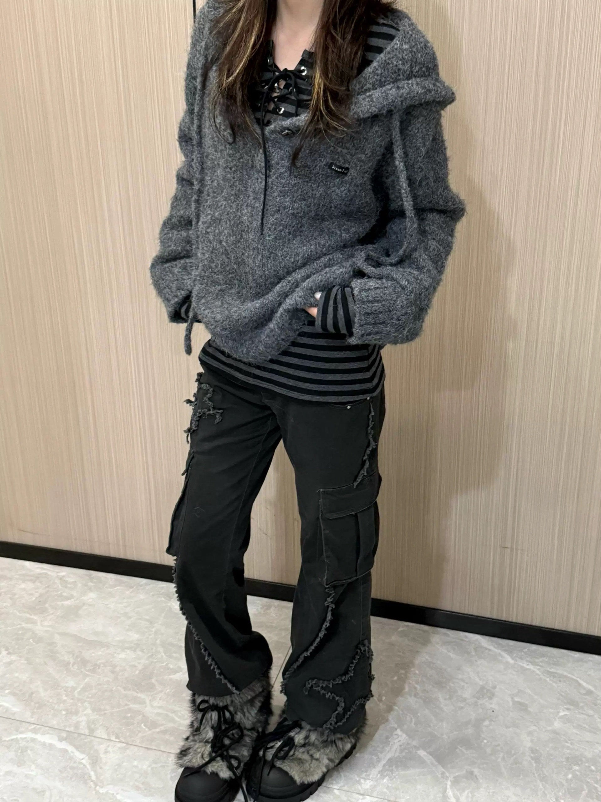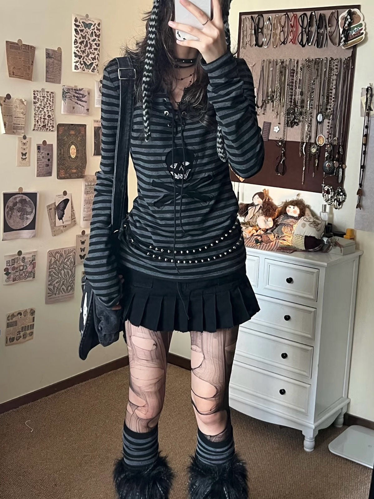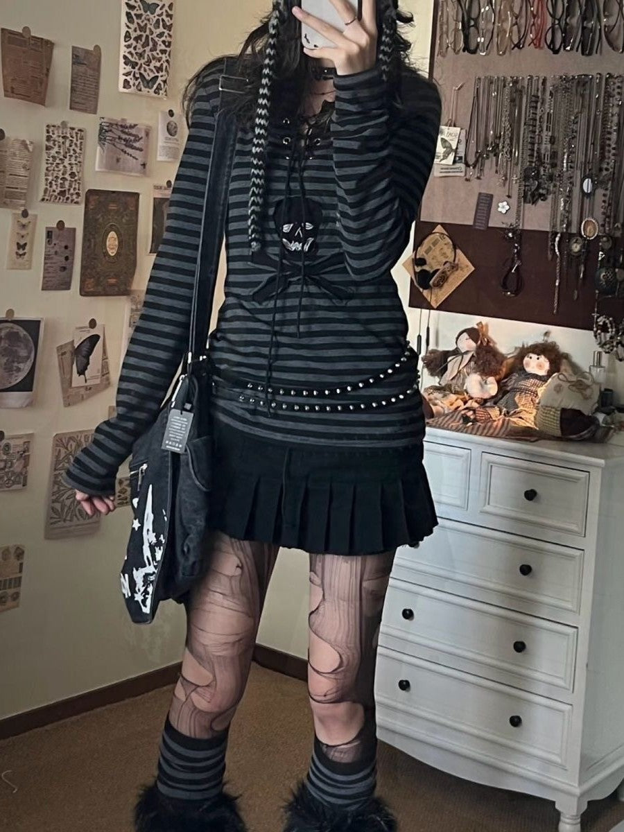 商品説明:ブラック×グレーのストライプが印象的なロングスリーブTシャツ。程よく体にフィットする細身シルエットで、すっきりとしたラインを演出します。