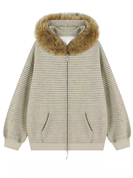 「si5si8」ストライプ柄 ファー付きジップアップパーカー TK0319