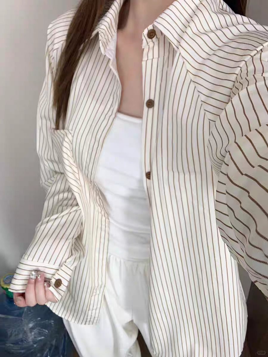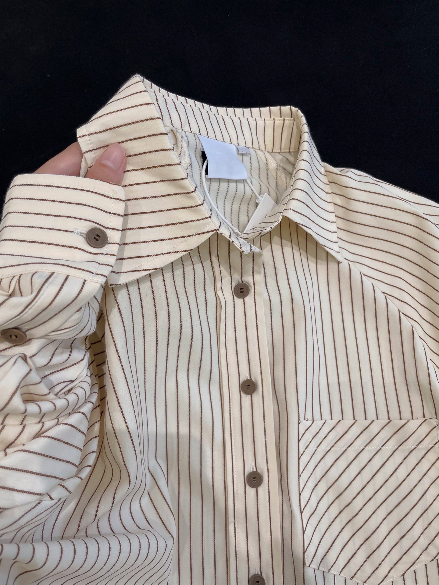 商品説明:立ち襟デザインが映えるフレンチストライプシャツ。光沢感のあるなめらかな素材で、しわになりにくく軽やかな着心地です。1枚で着てもニットやジャケットのインナーにしても◎ オンオフ問わず使え、通勤や休日のお出かけまで幅広く活躍する秋の万能トップスです。