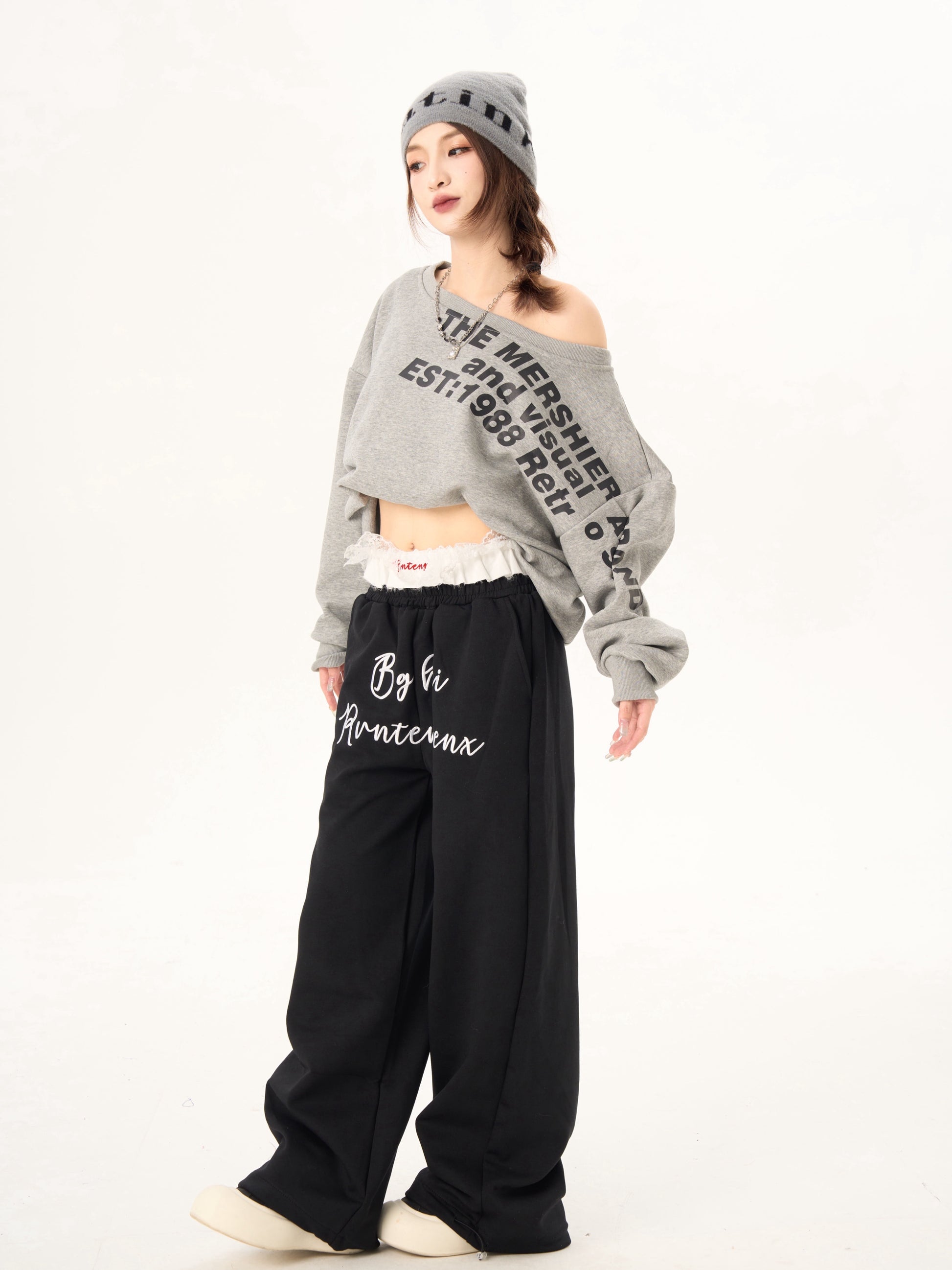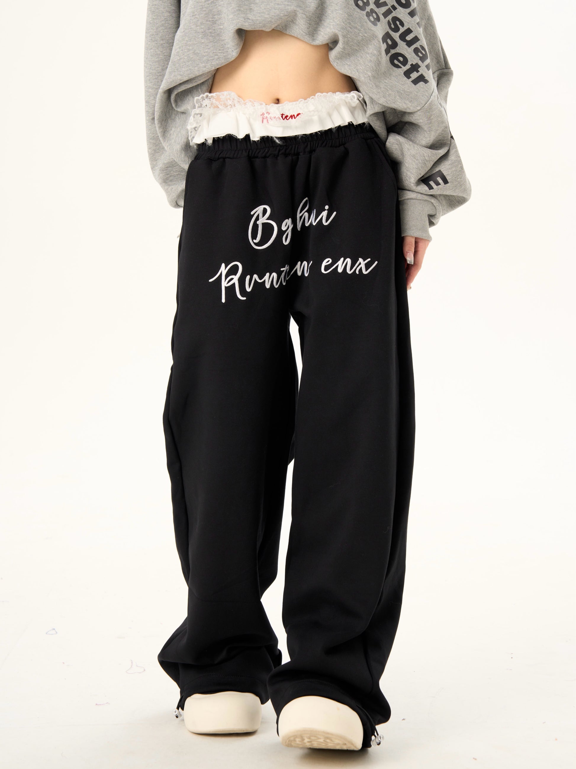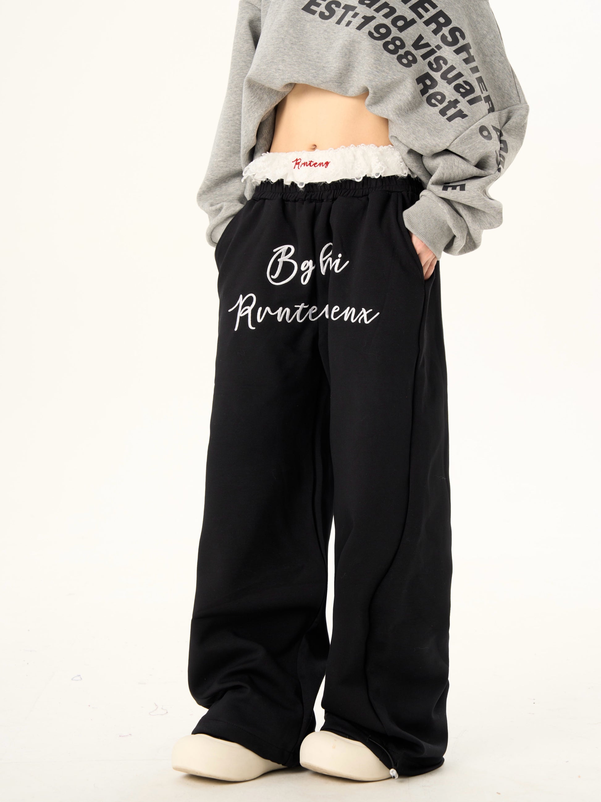 「ダブルウエスト」レースワイドスウェットパンツ TK0299