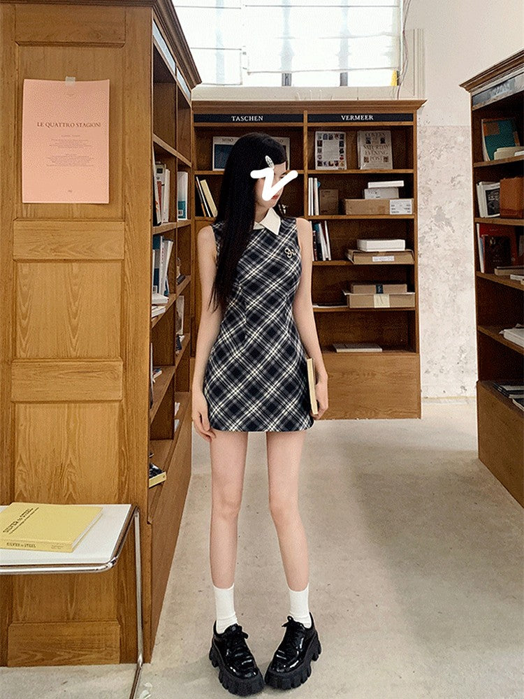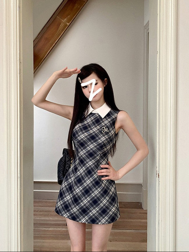 商品説明:クラシカルなチェック柄とPoloカラーが魅力のノースリーブワンピース。ウエストを引き締める美シルエットで、上品かつ爽やかな印象に。夏のデートやお出かけコーデにもぴったりな一枚です。