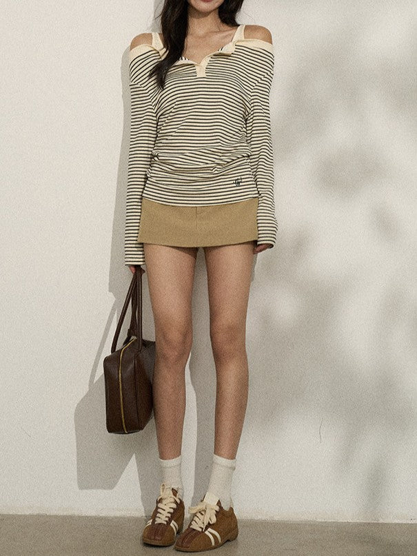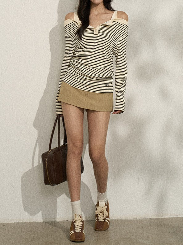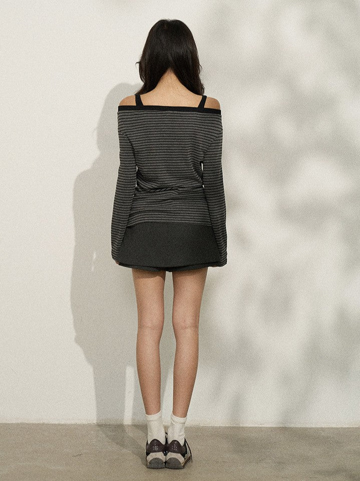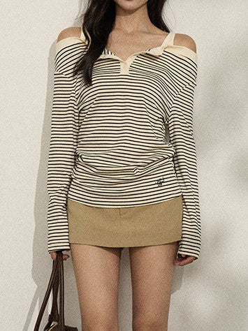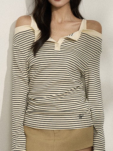 バイカラー ストライプオフショルロンT TK0380