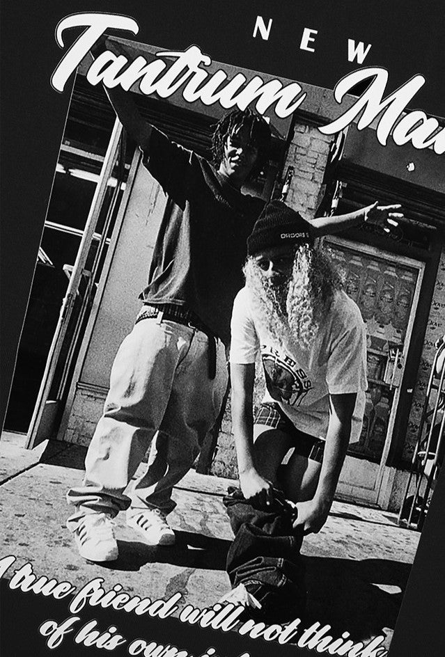 商品説明:ストリート感満載の人物プリントが目を引く、男女兼用のオーバーサイズTシャツ。綿素材で着心地も抜群、夏の主役アイテムに。