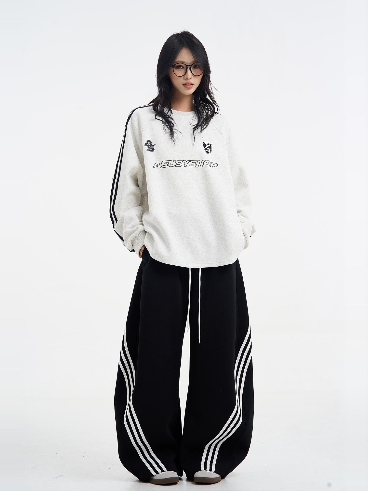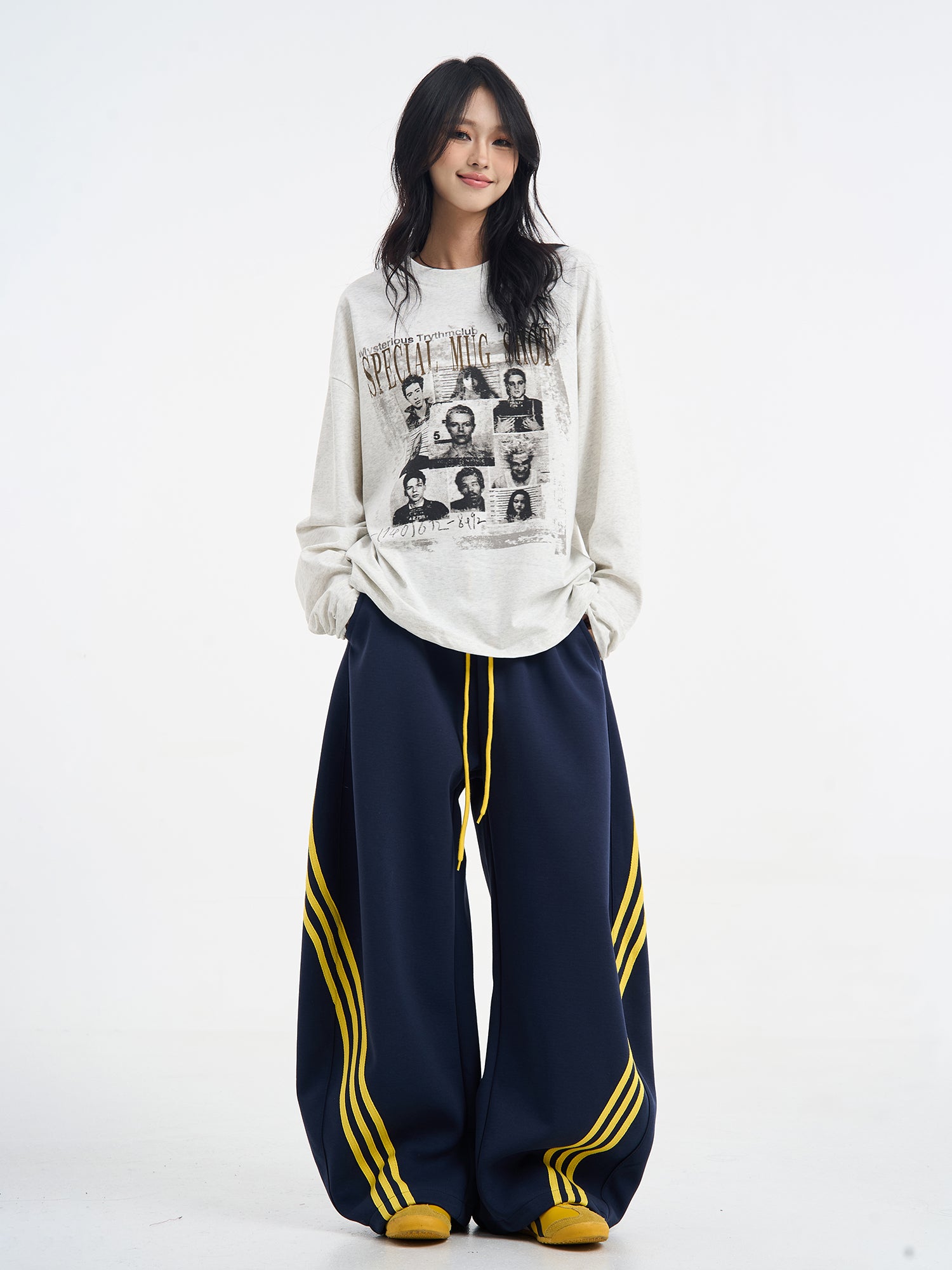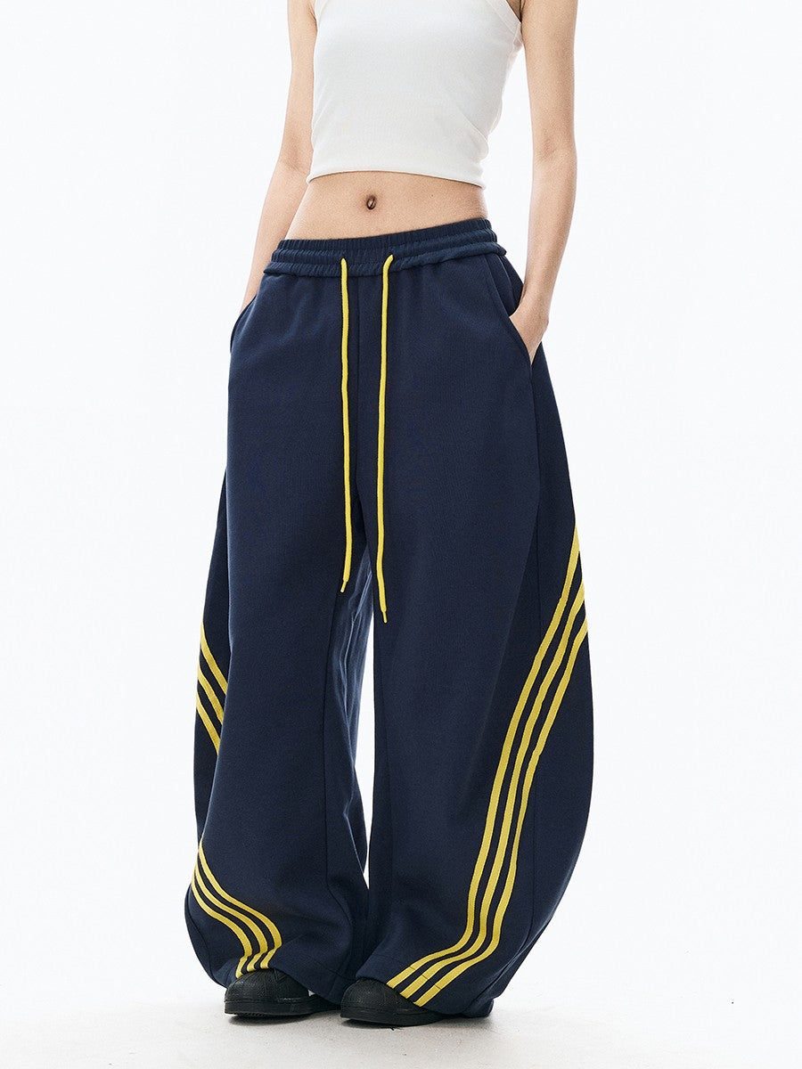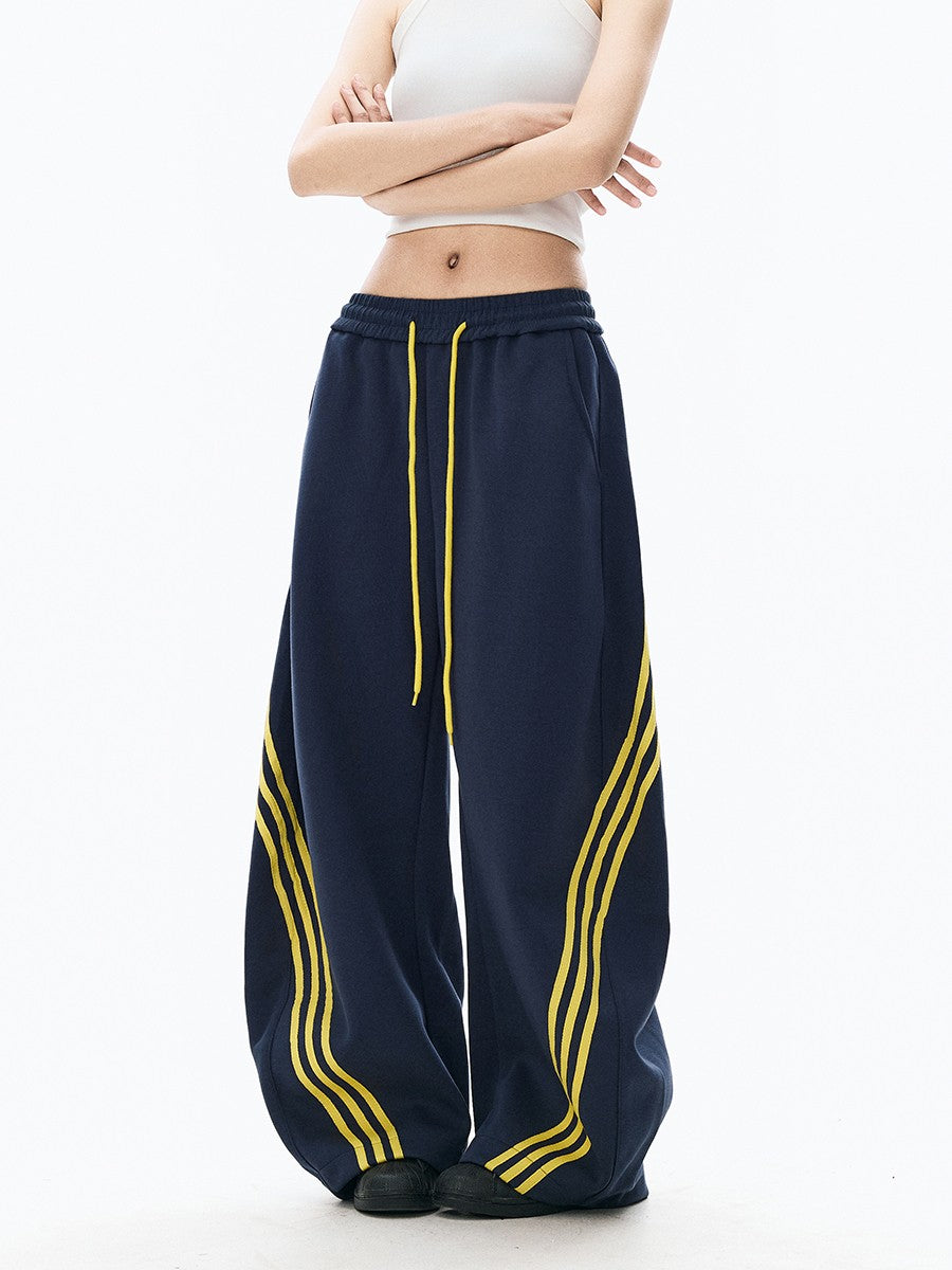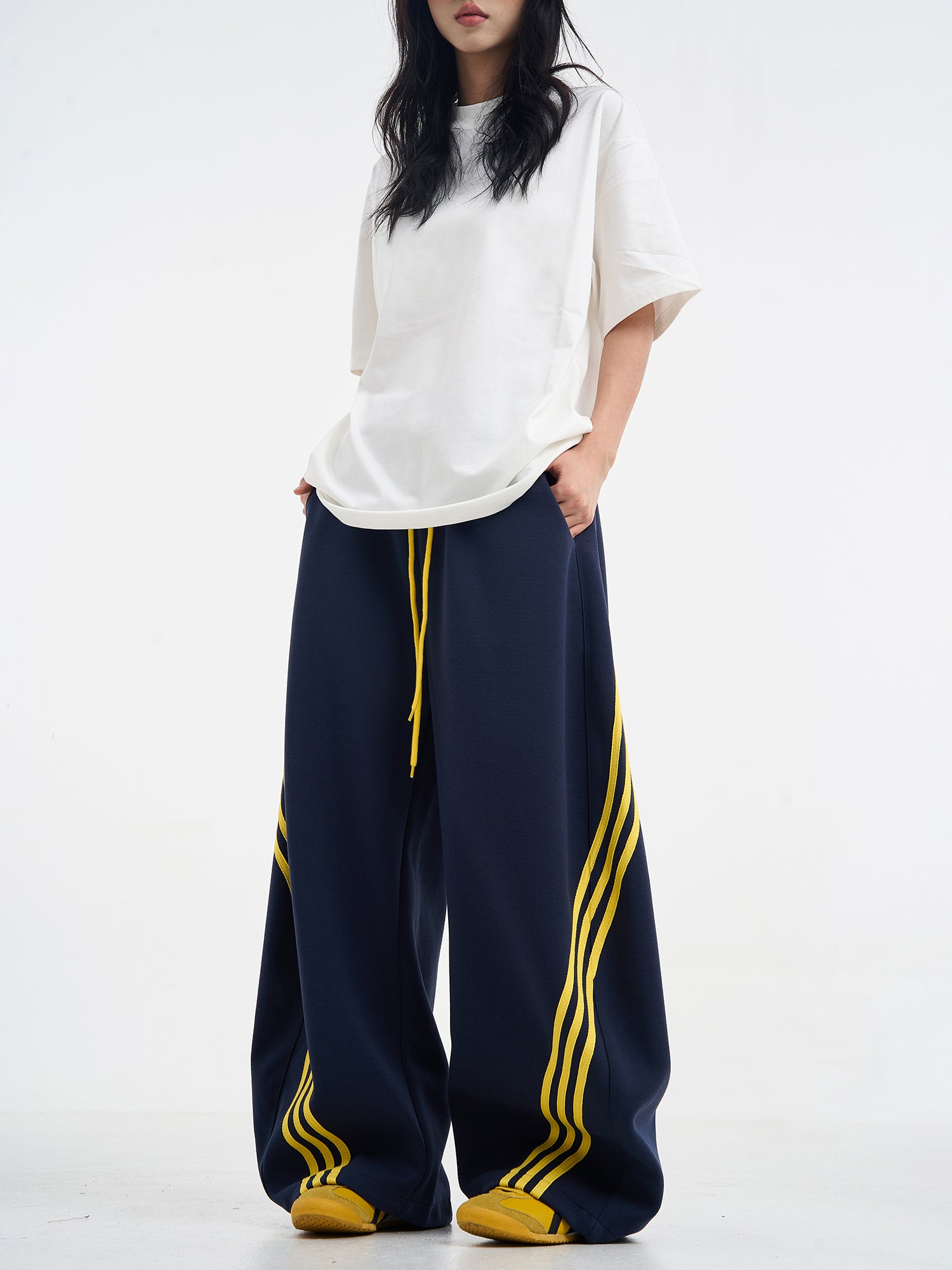 商品説明:アメリカンレトロな雰囲気漂うラインデザインのワイドパンツ。ゆったりとしたシルエットで動きやすく、ストリート感を演出。春のカジュアルコーデにぴったりで、黄と白の2カラー展開。韓国風やBFスタイルにも合わせやすいおすすめのアイテムです。