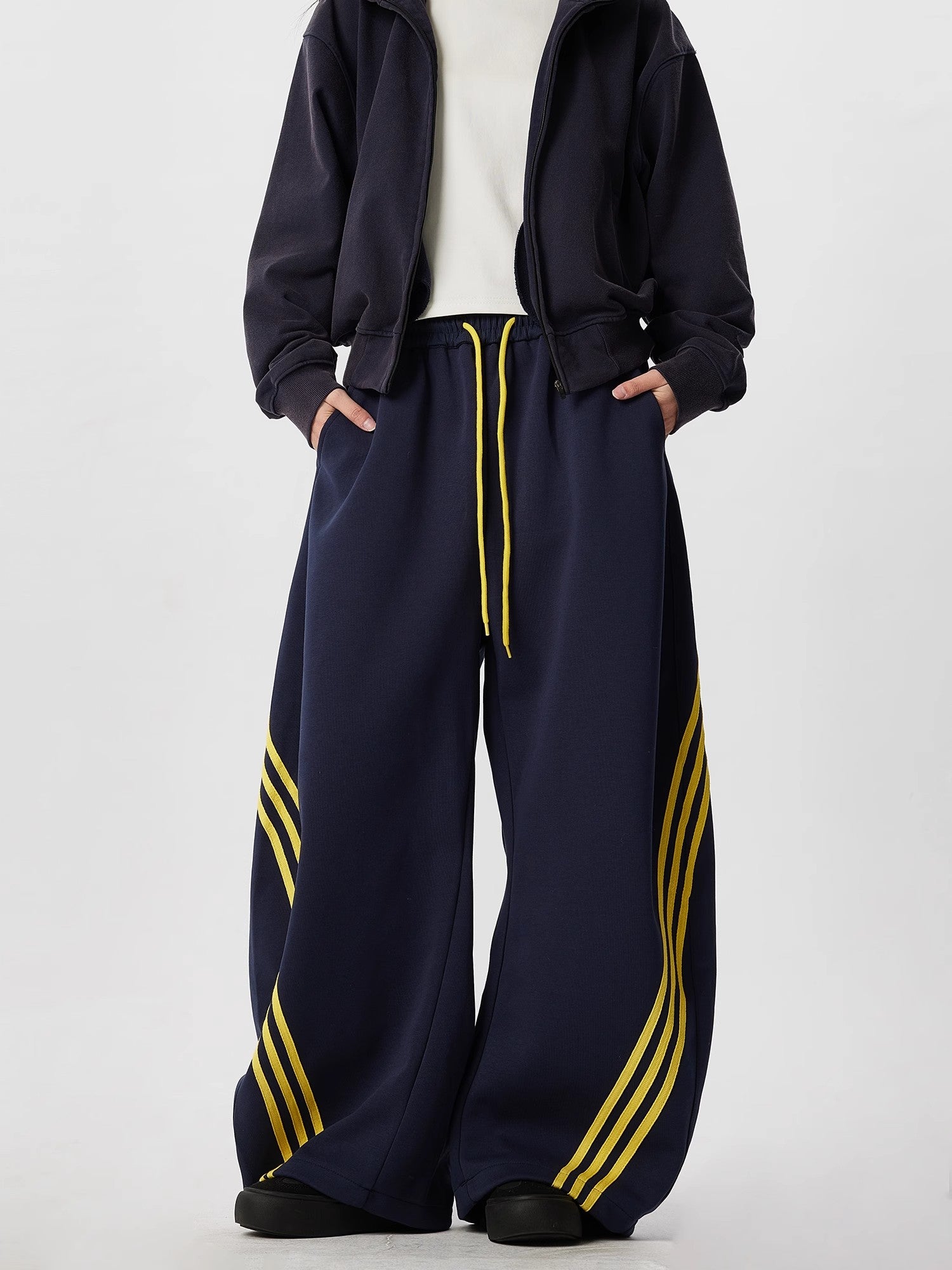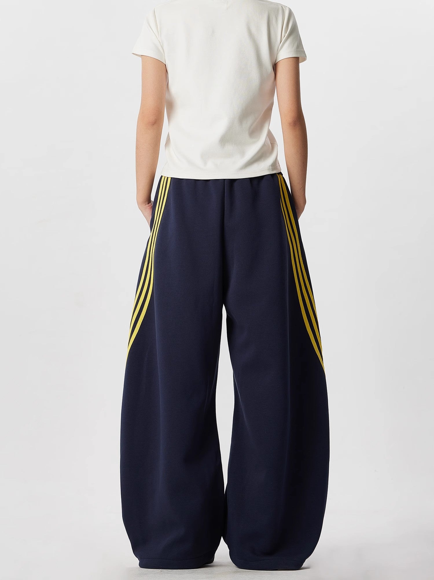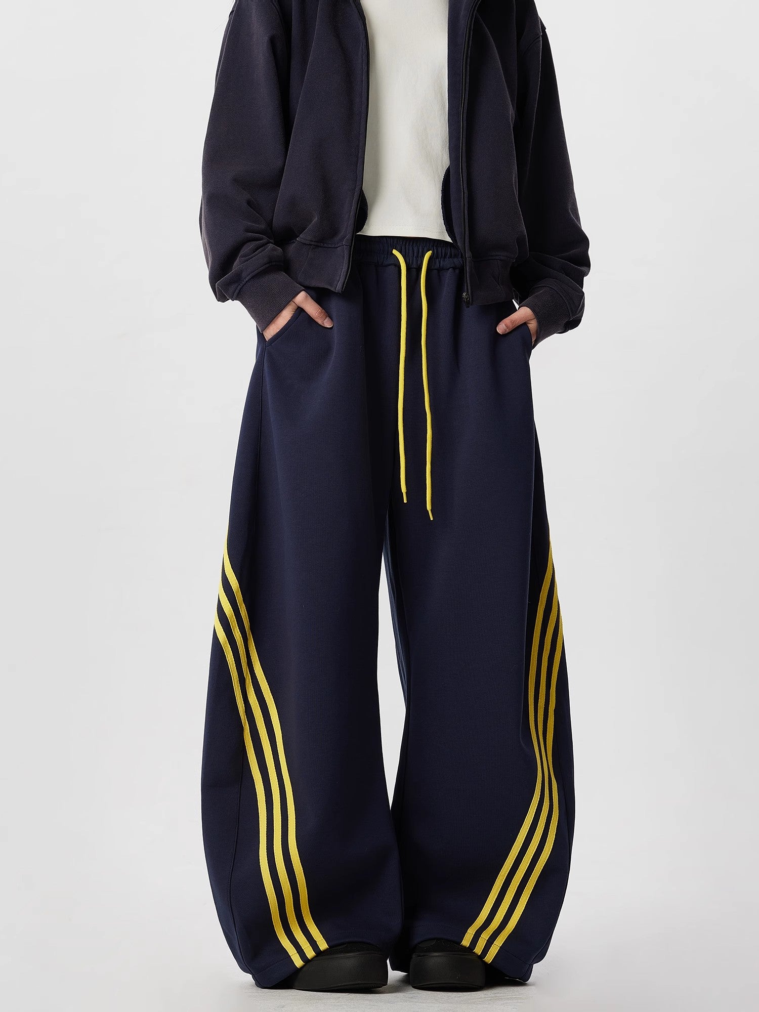 商品説明:アメリカンレトロな雰囲気漂うラインデザインのワイドパンツ。ゆったりとしたシルエットで動きやすく、ストリート感を演出。