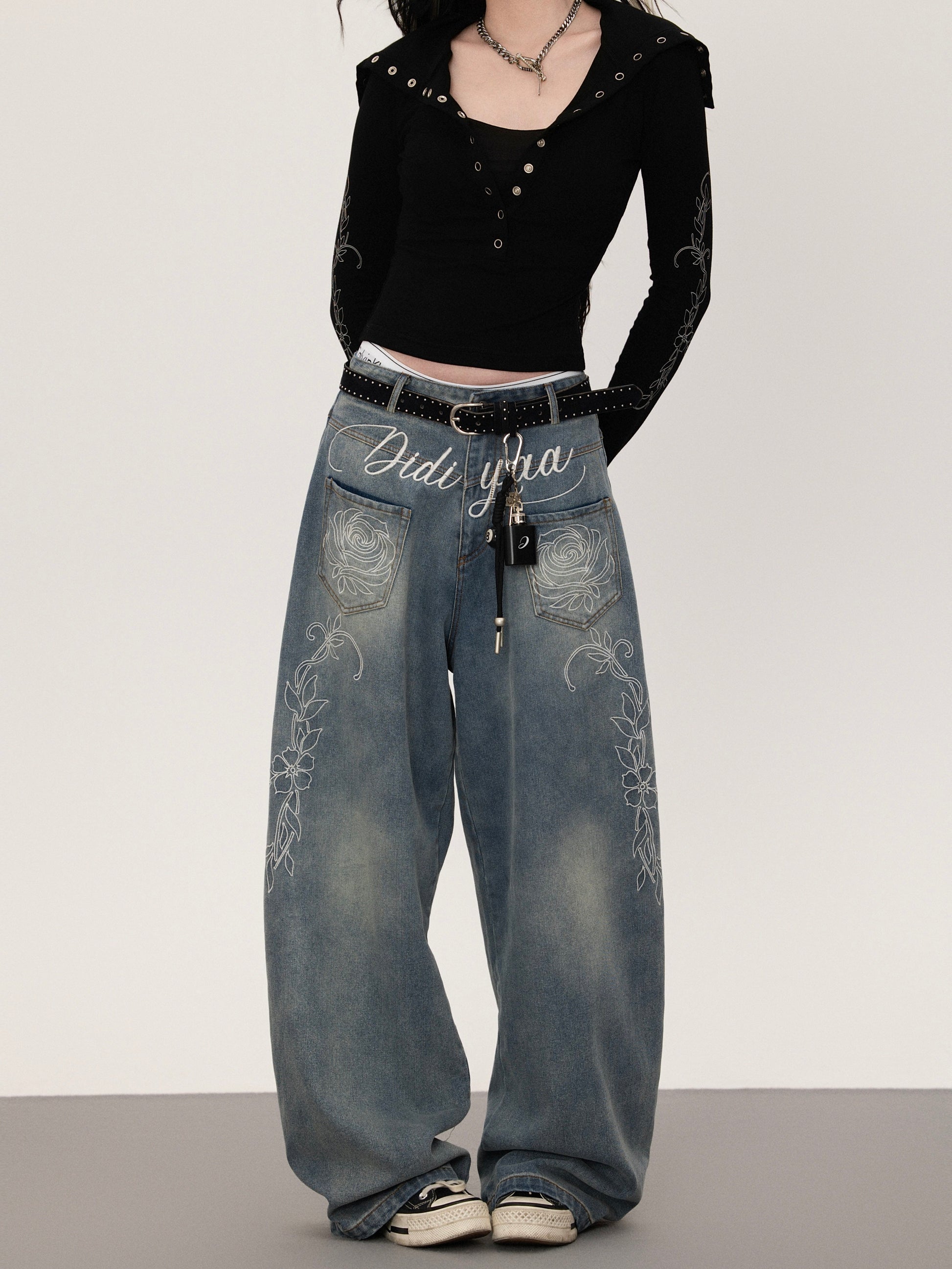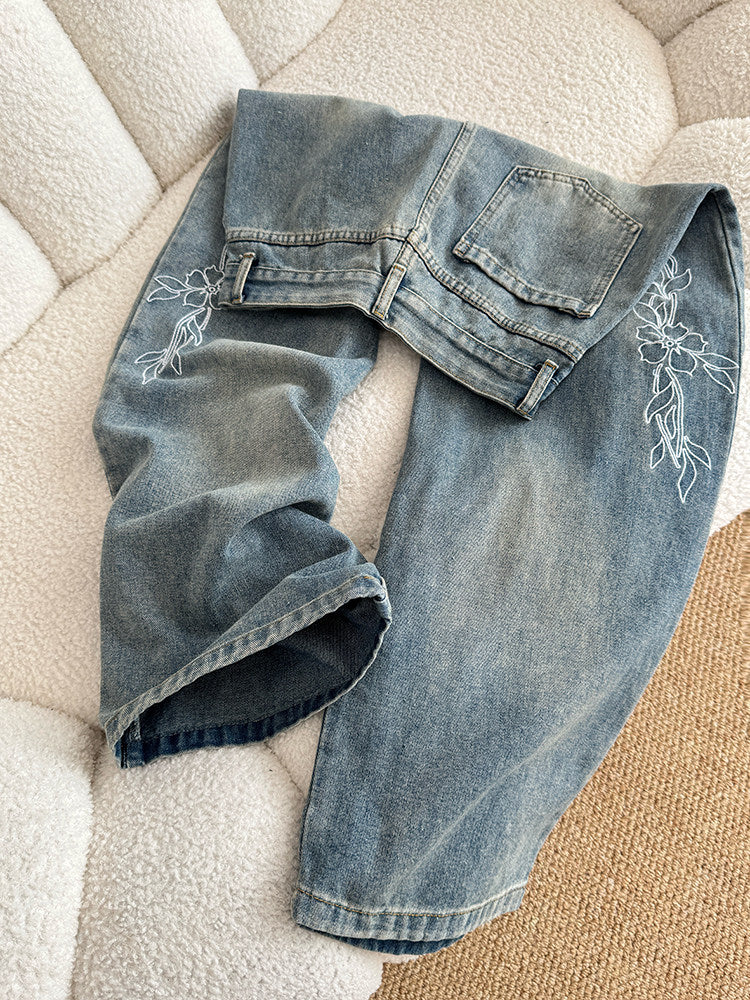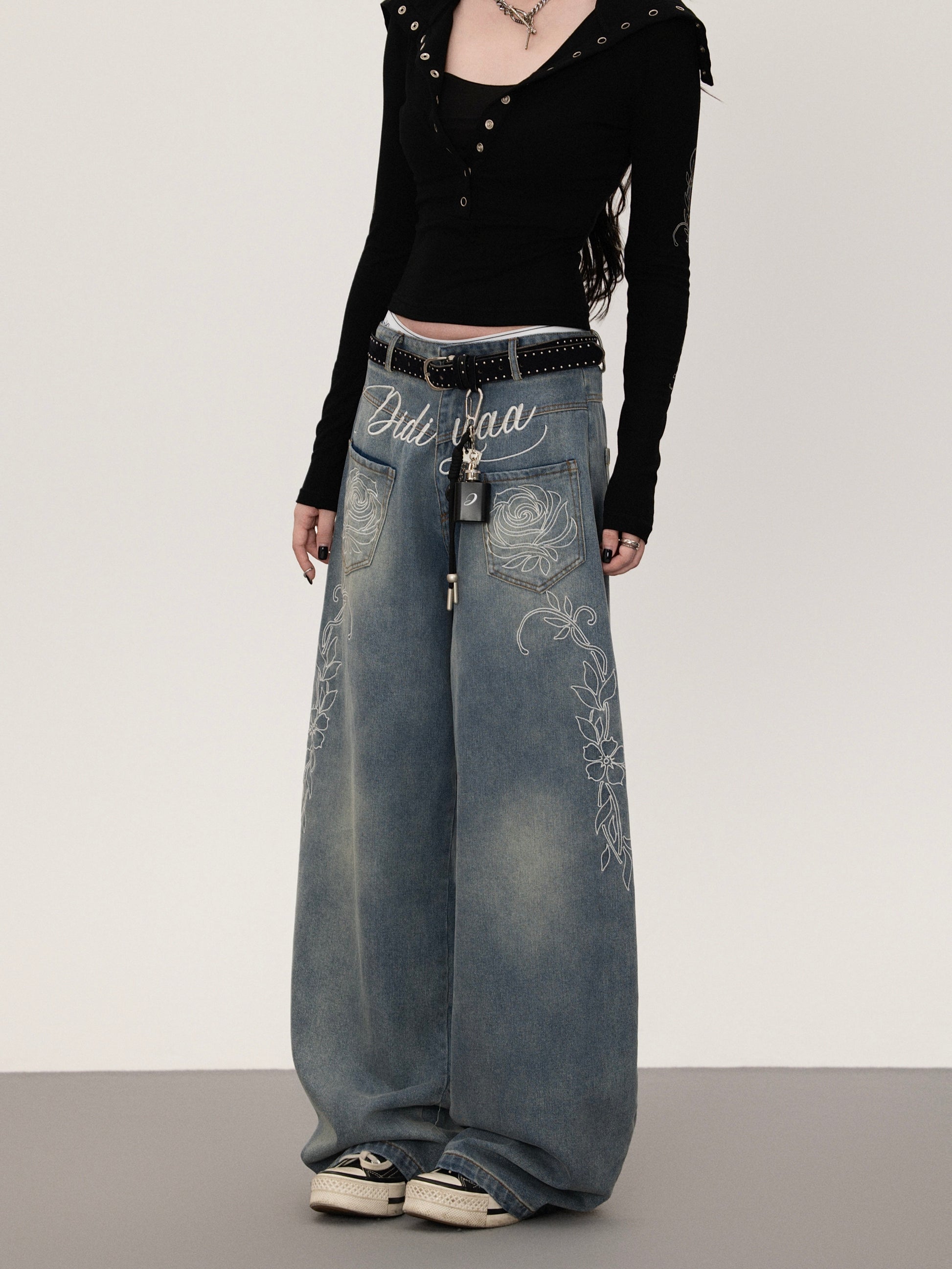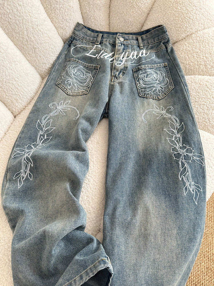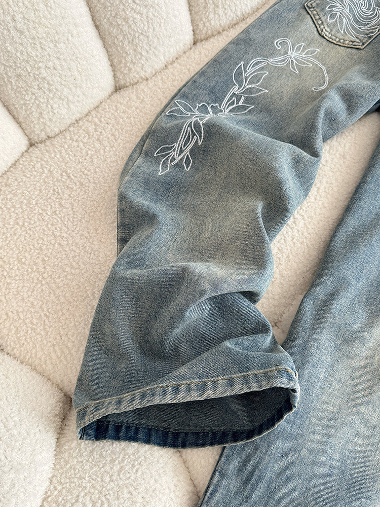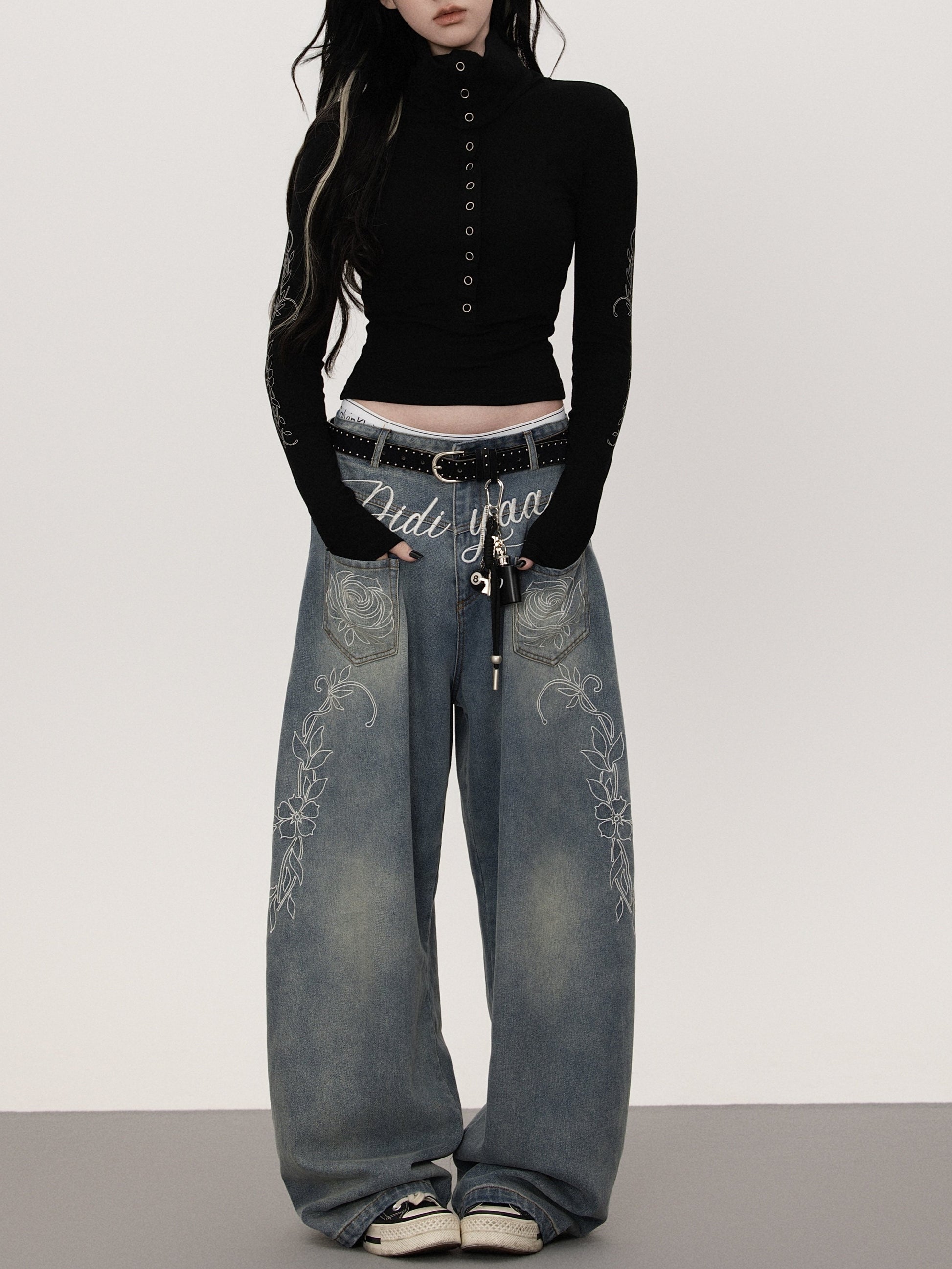 商品説明:クラシカルな花柄が全体にプリントされた、主役級のルーズなデニムパンツ。ヴィンテージライクなフェード感のあるブルー地に、フラワーモチーフが映え、これ1枚でこなれ感のあるスタイリングに仕上がります◎