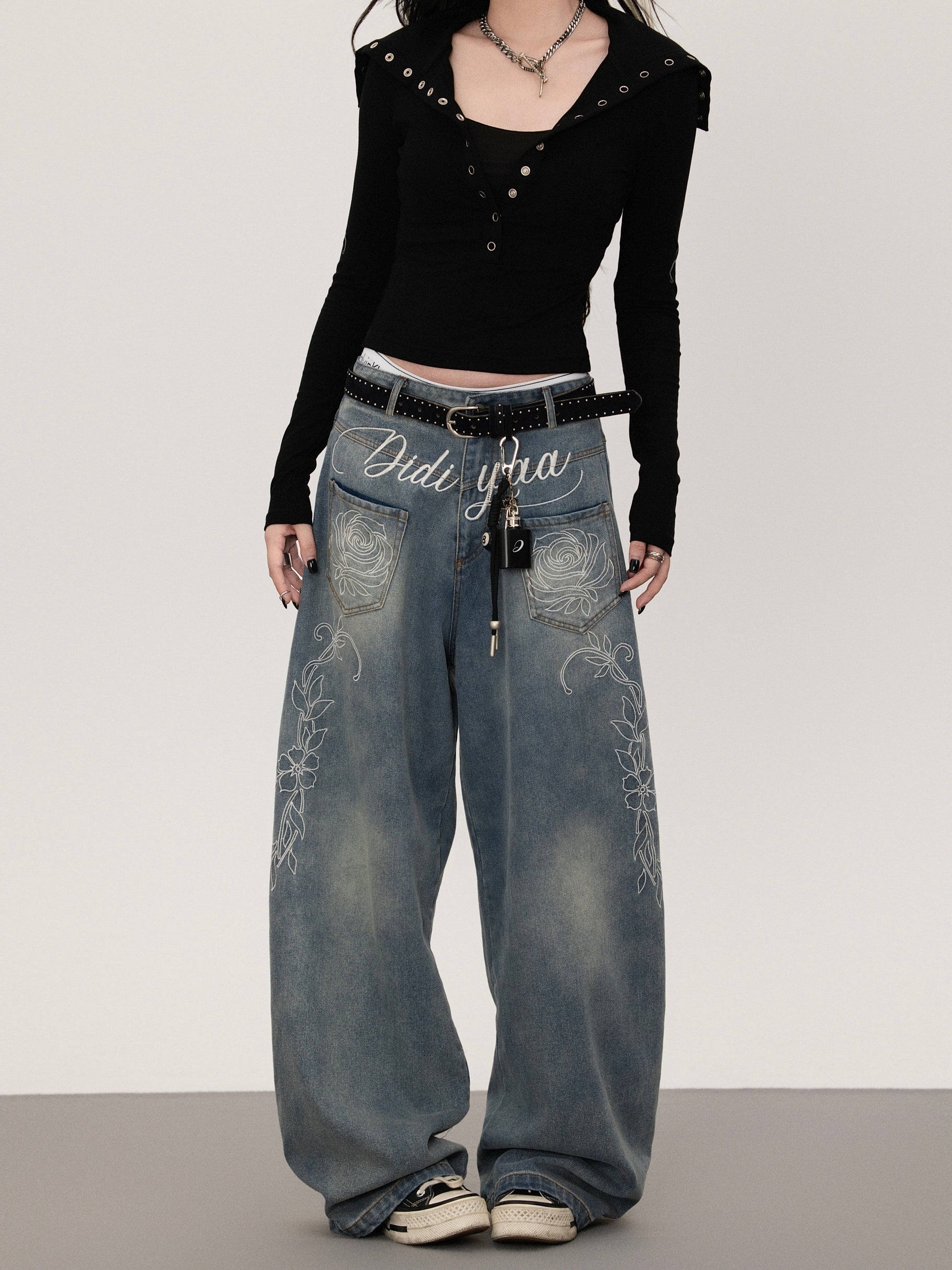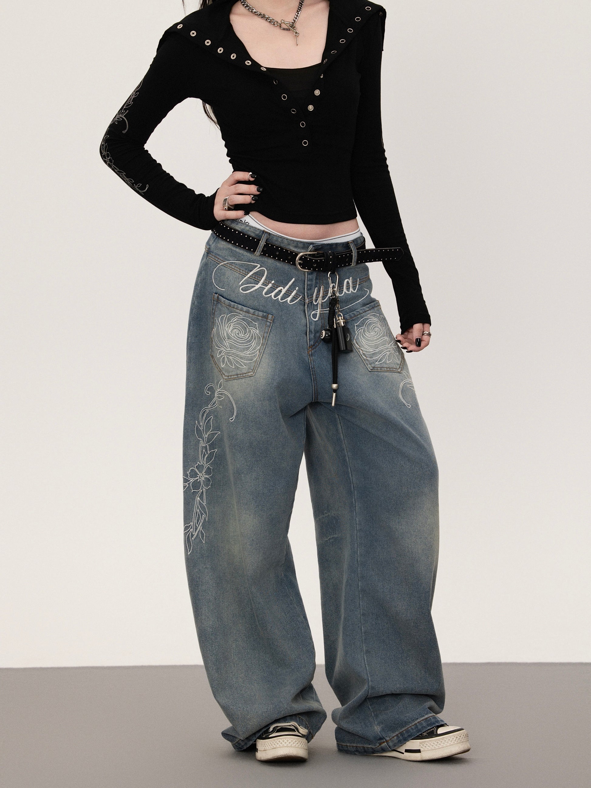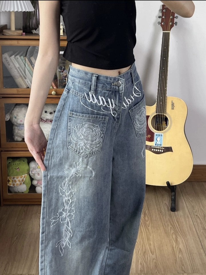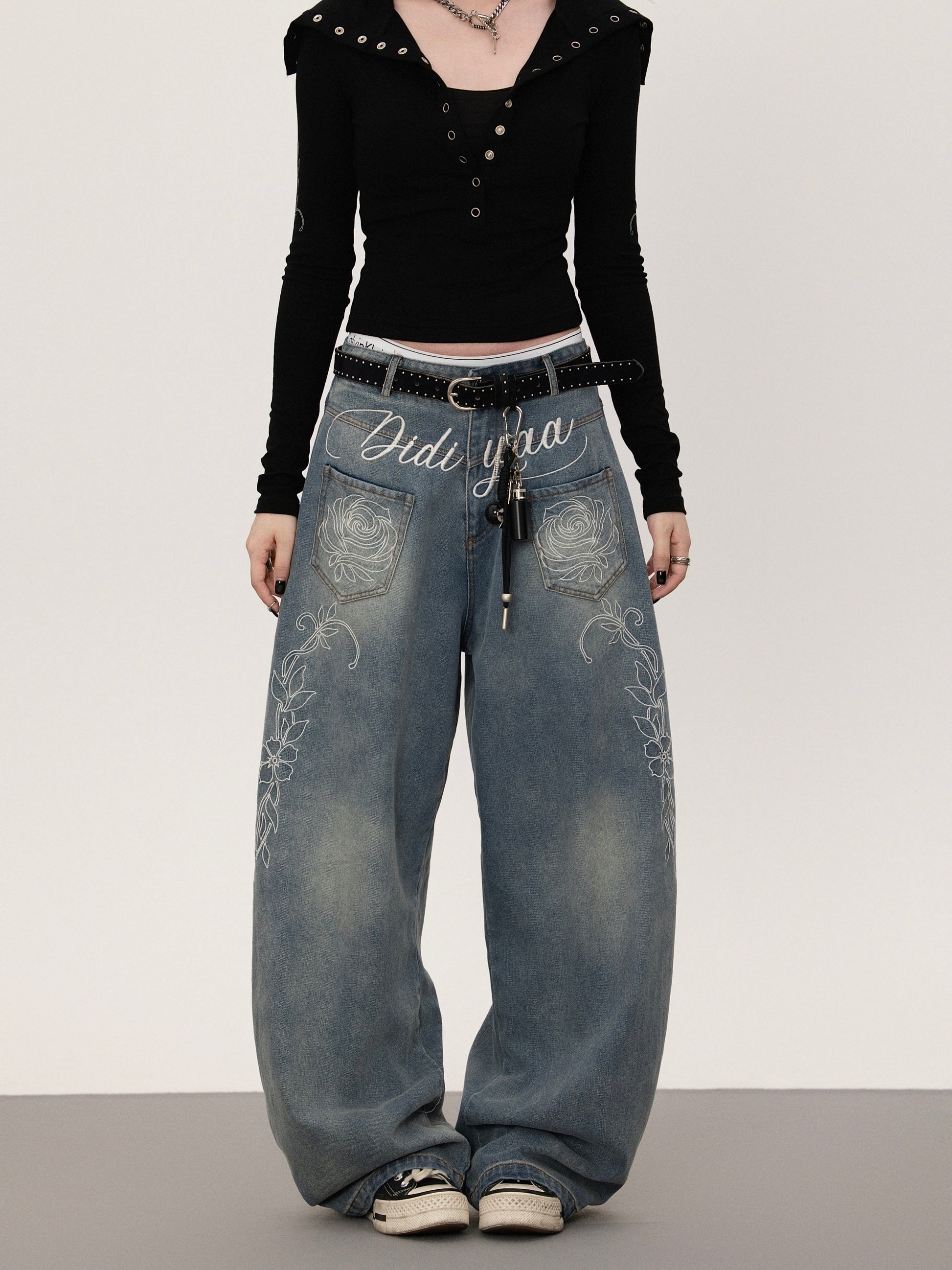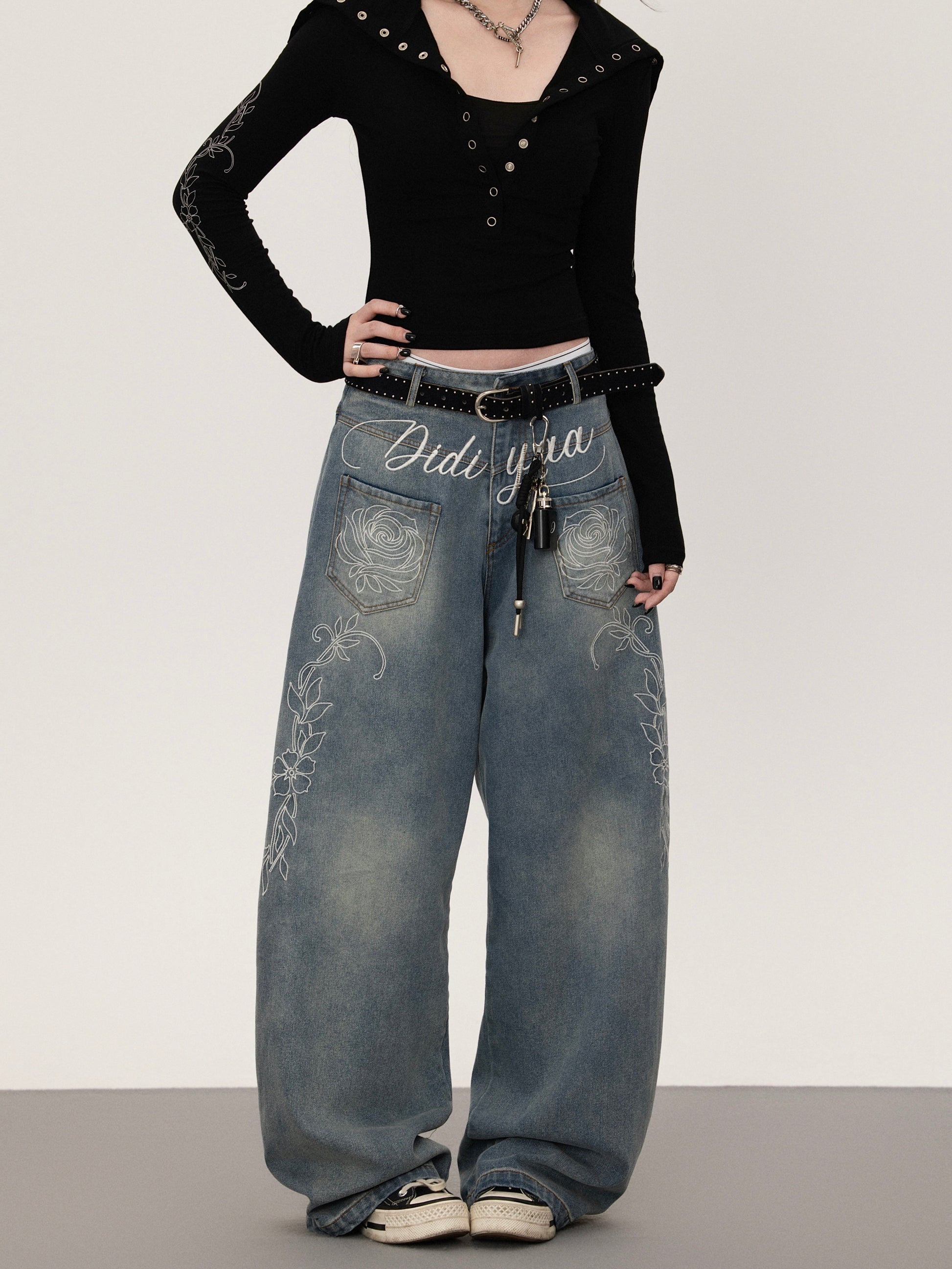 商品説明:クラシカルな花柄が全体にプリントされた、主役級のルーズなデニムパンツ。ヴィンテージライクなフェード感のあるブルー地に、フラワーモチーフが映え、これ1枚でこなれ感のあるスタイリングに仕上がります◎