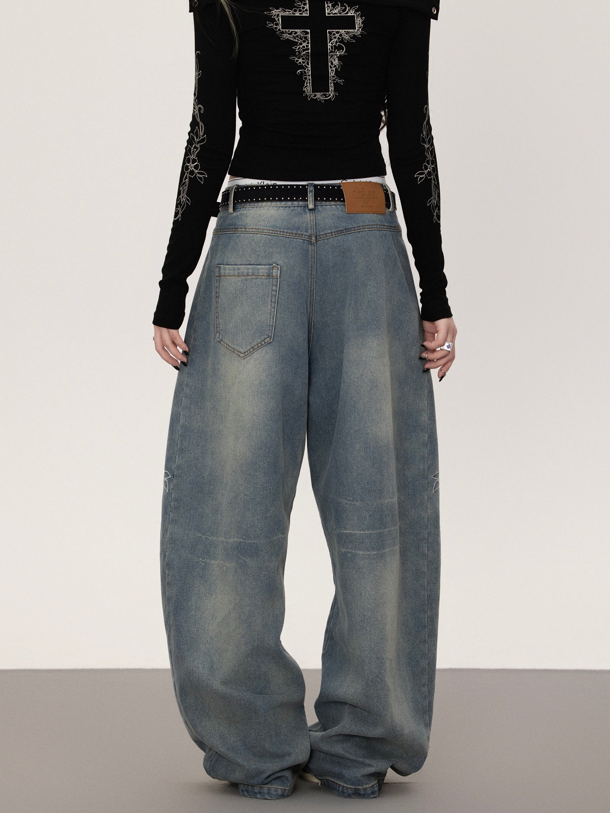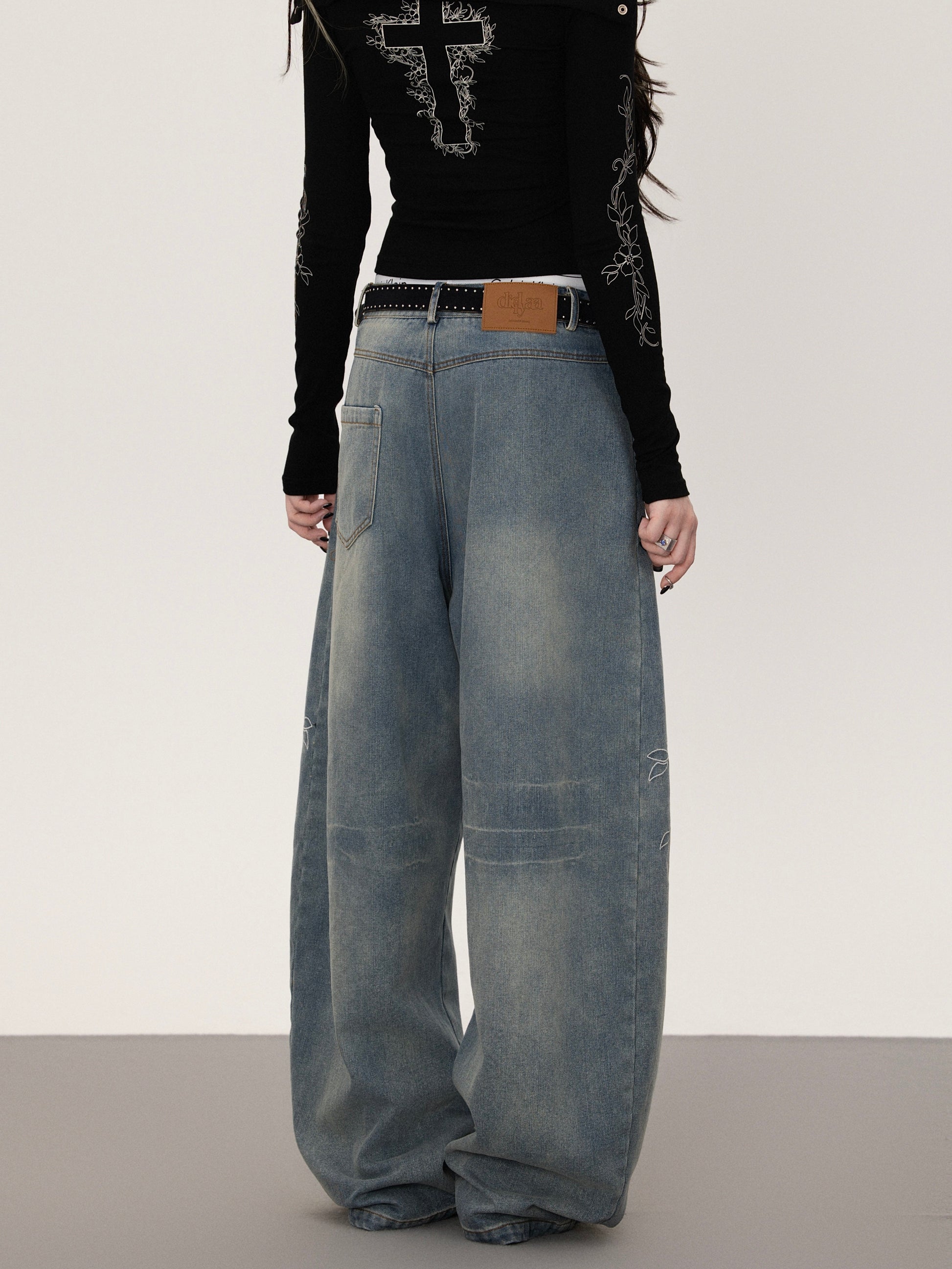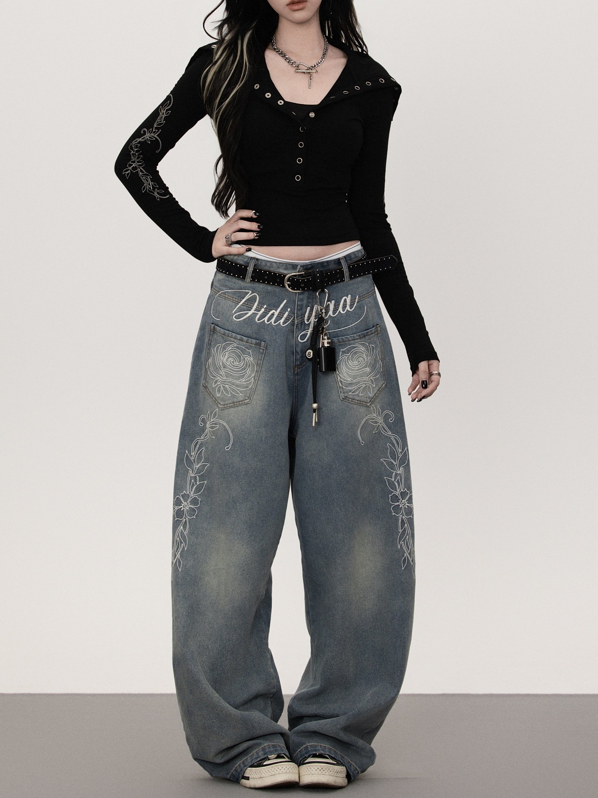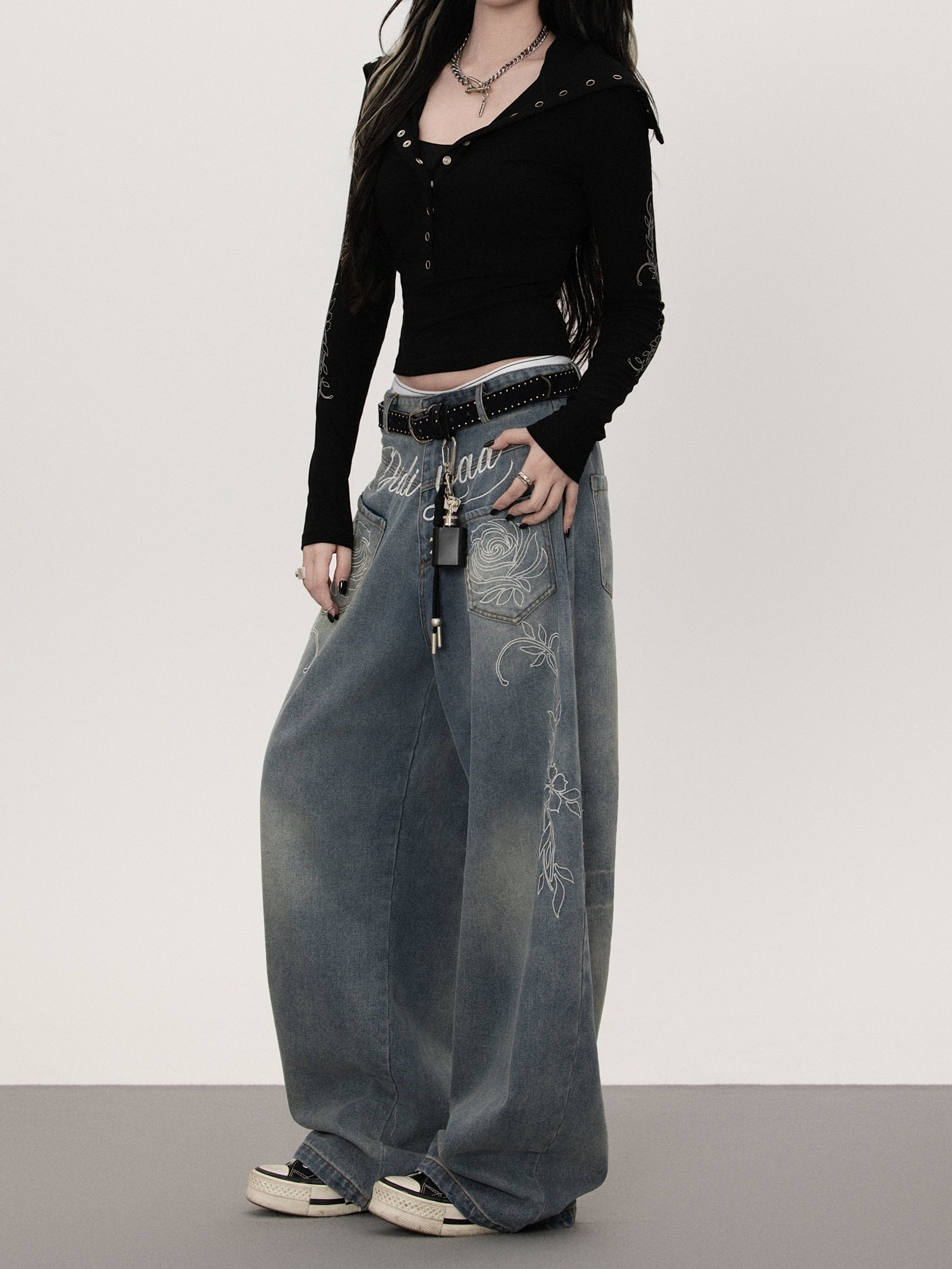商品説明:クラシカルな花柄が全体にプリントされた、主役級のルーズなデニムパンツ。ヴィンテージライクなフェード感のあるブルー地に、フラワーモチーフが映え、これ1枚でこなれ感のあるスタイリングに仕上がります◎
