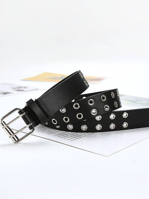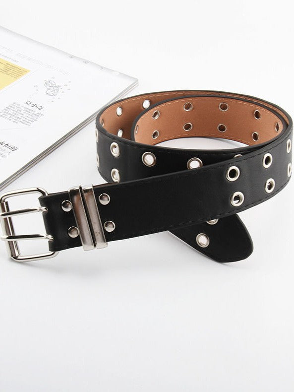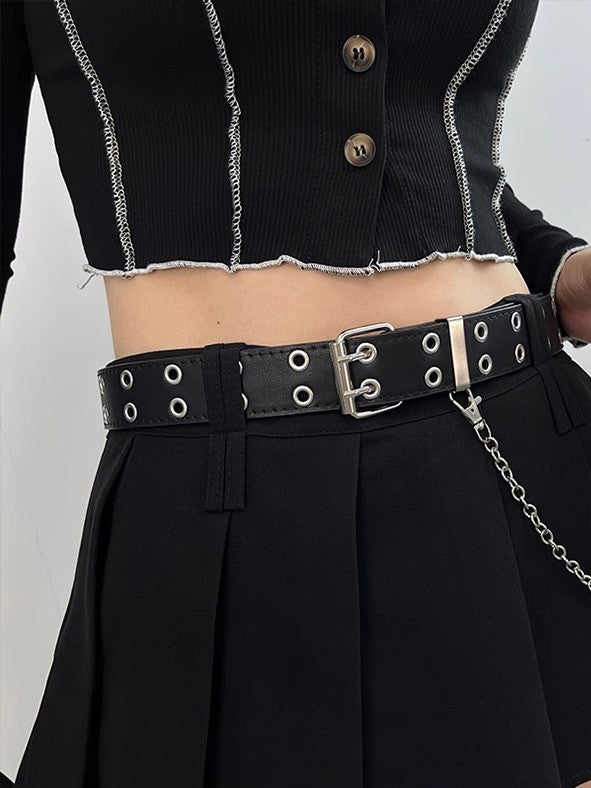 「デニムコーデの必須アクセ」ブラックダブルホールチェーン付きレザーベルトSP0034