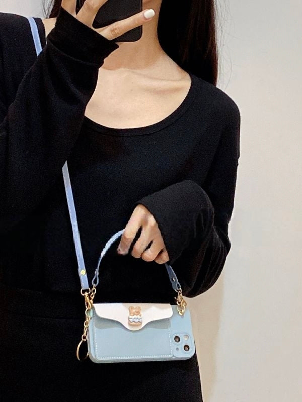 商品説明:かわいい小熊柄がポイント。斜め掛けストラップ付きで、持ち運びも便利。コーデに映える万能アイテムです。iPhone14〜16対応。