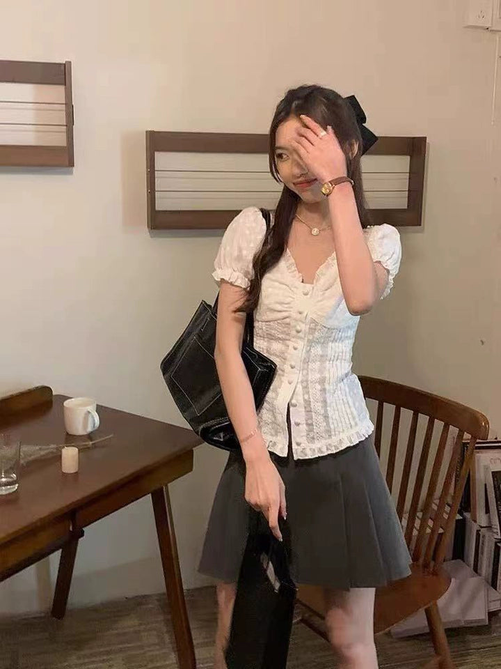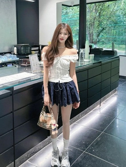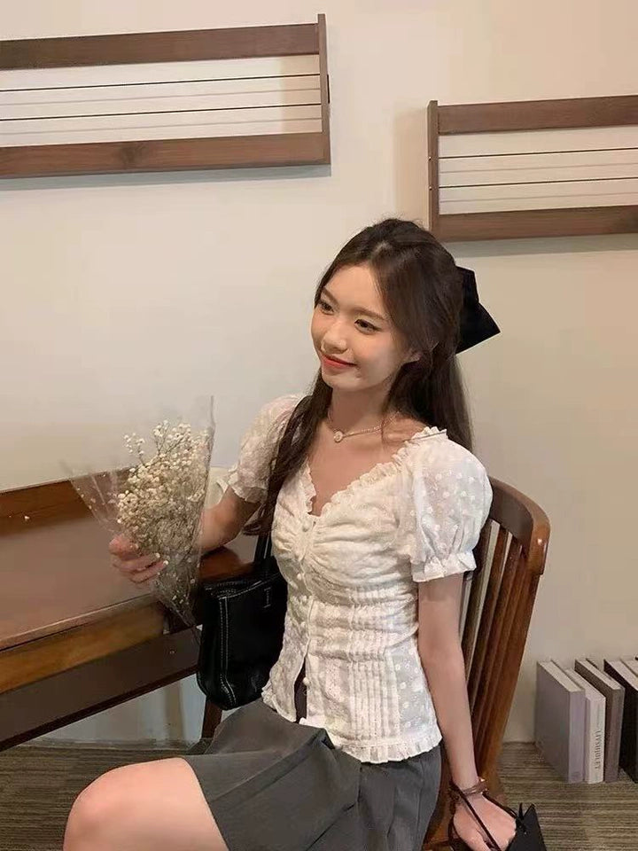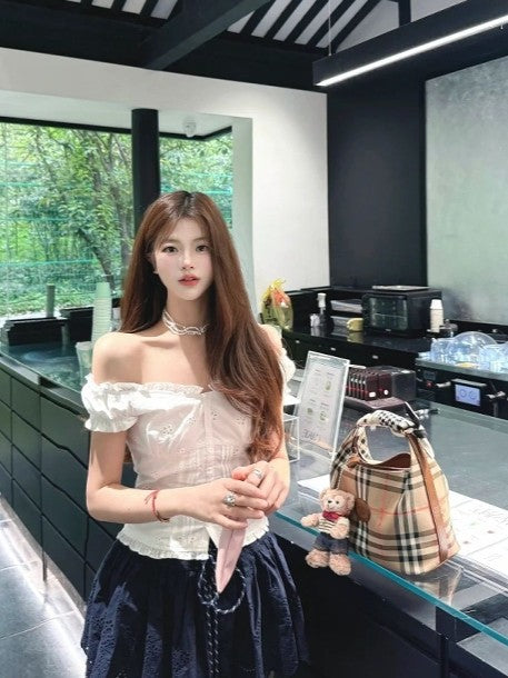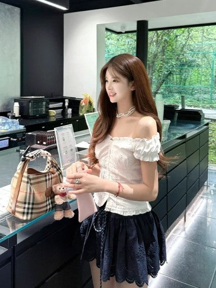 商品説明:2WAY仕様のレースブラウス。肩を落としてオフショルダー風にも、通常のブラウスとしても着用可能。繊細なレースとVネックデザインが女性らしさを引き立て、デイリーにも特別な日にもぴったりの一枚です。