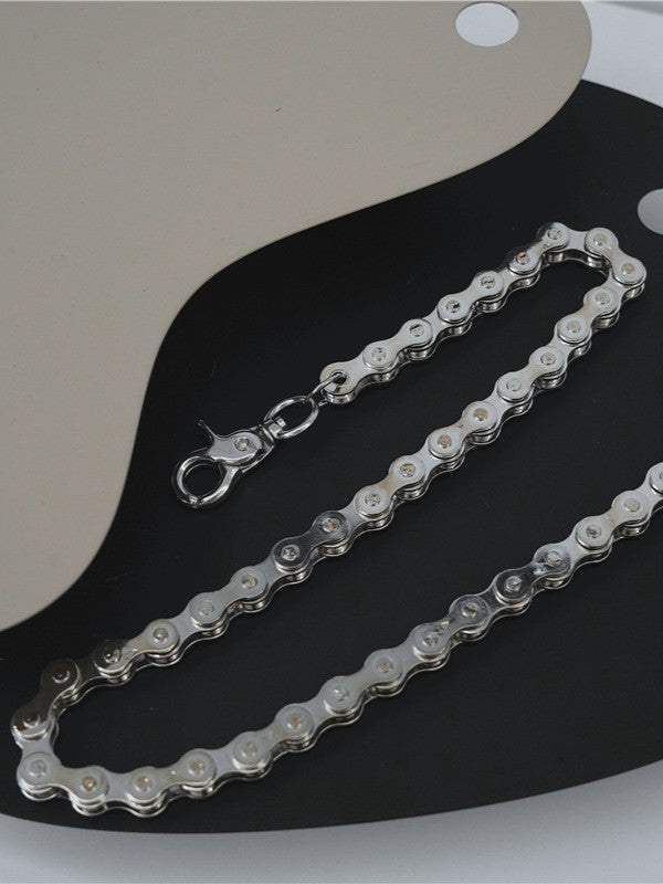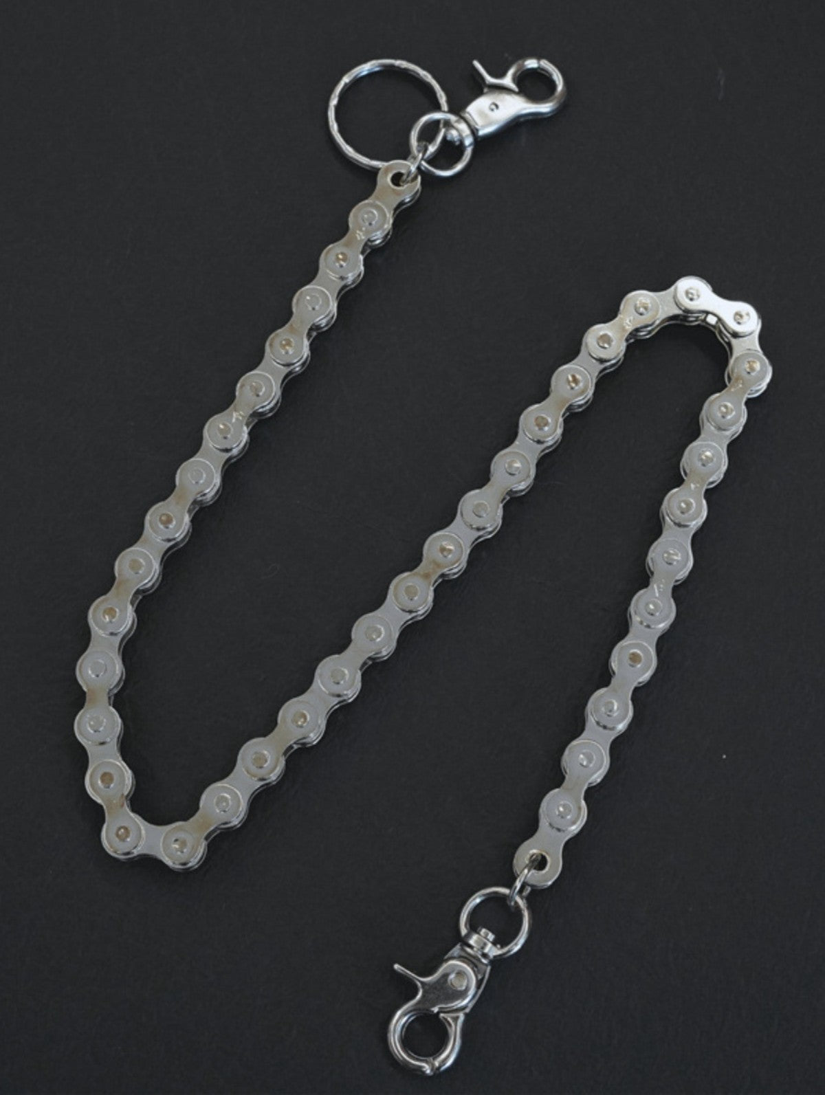 商品説明:存在感抜群の金属チェーンパンツアクセ。全長63cm、幅1.1cm、重さ200g。ストリートやパンクコーデにぴったりなユニセックスアイテム。
