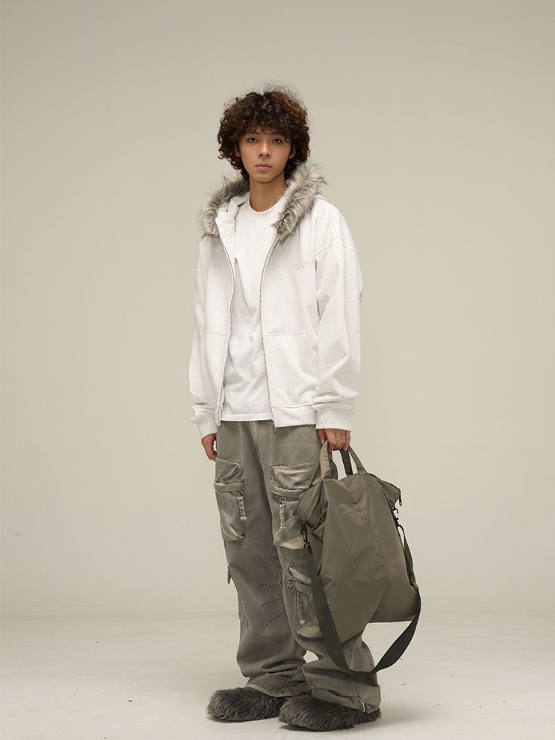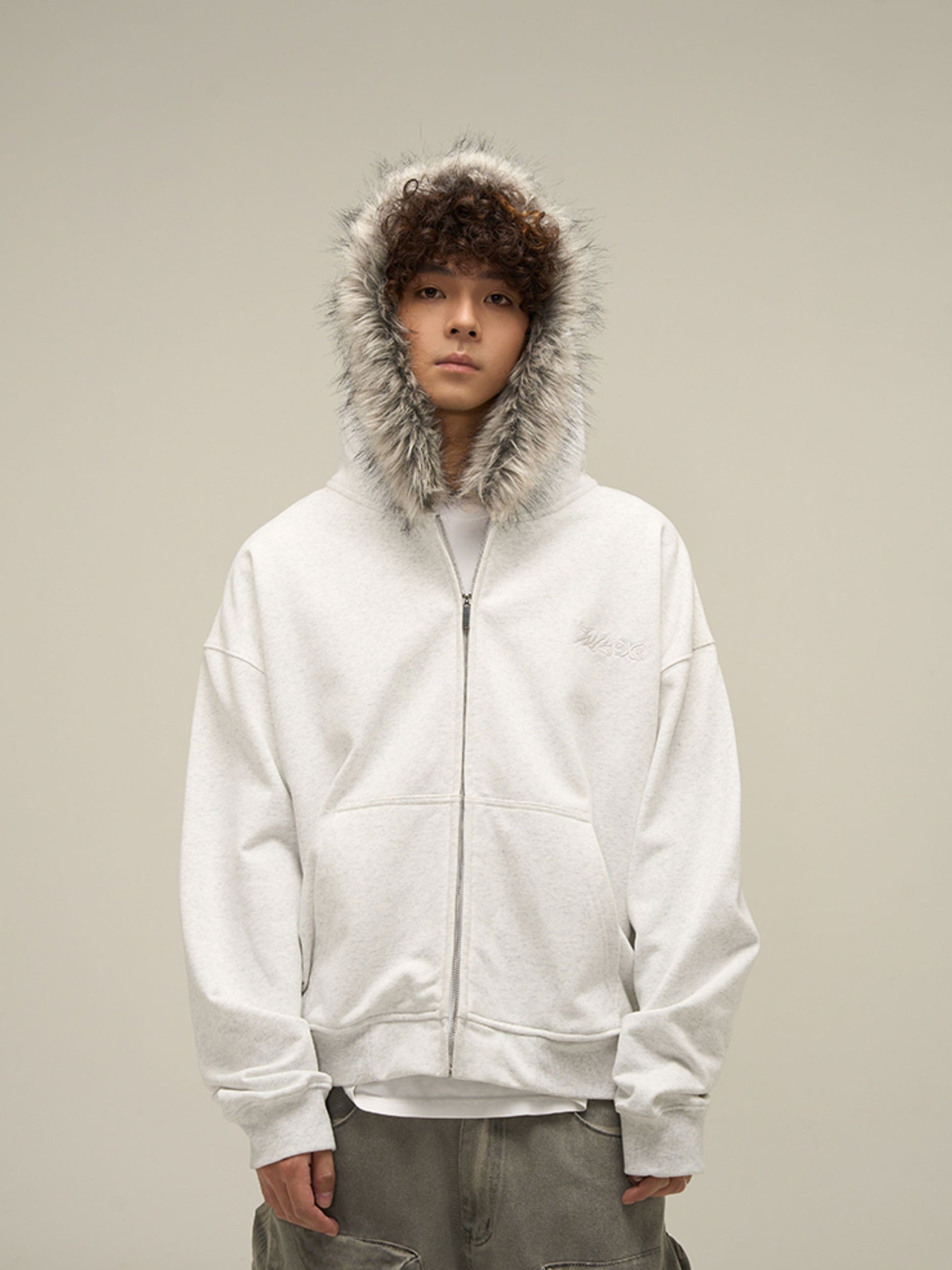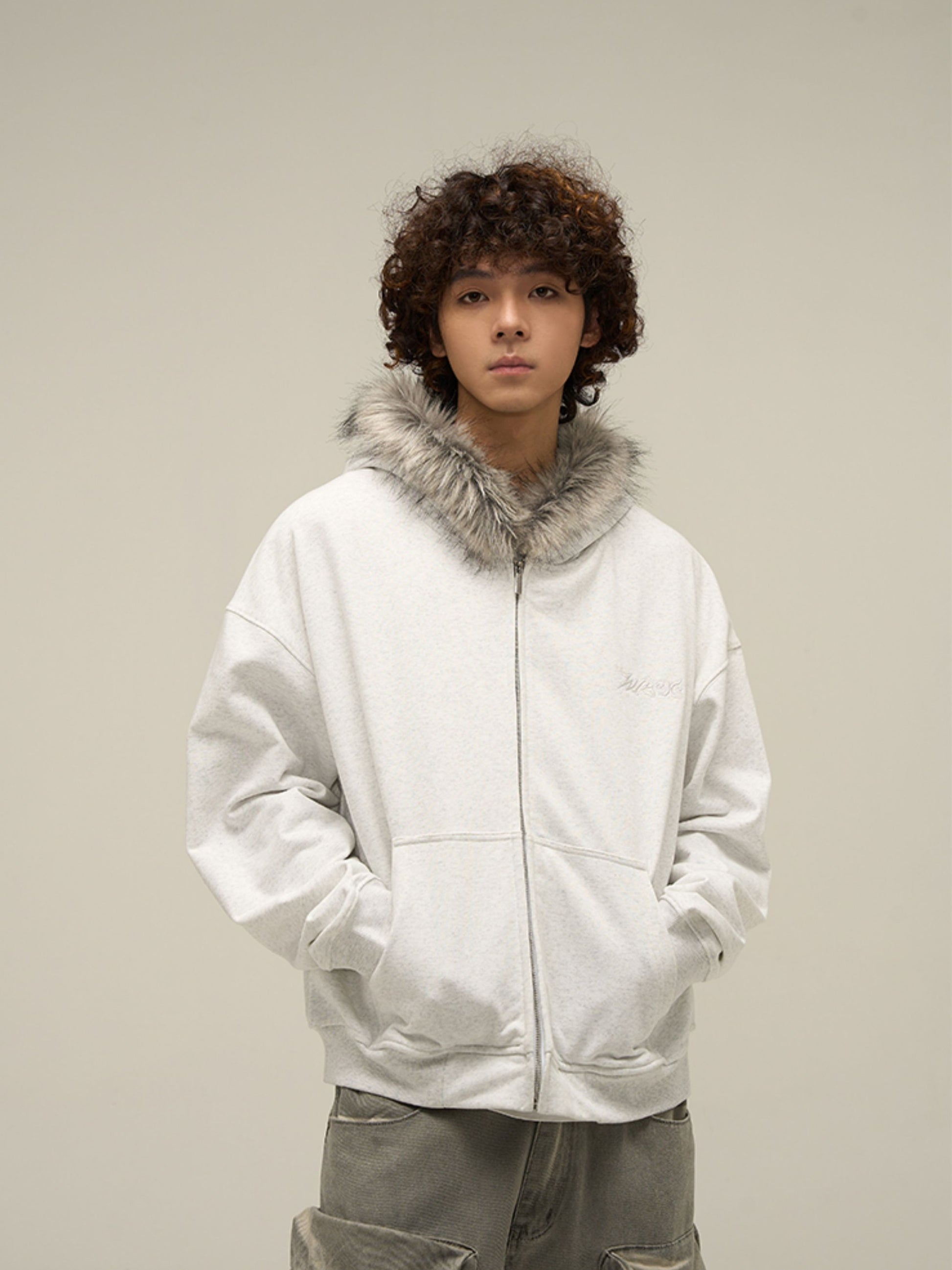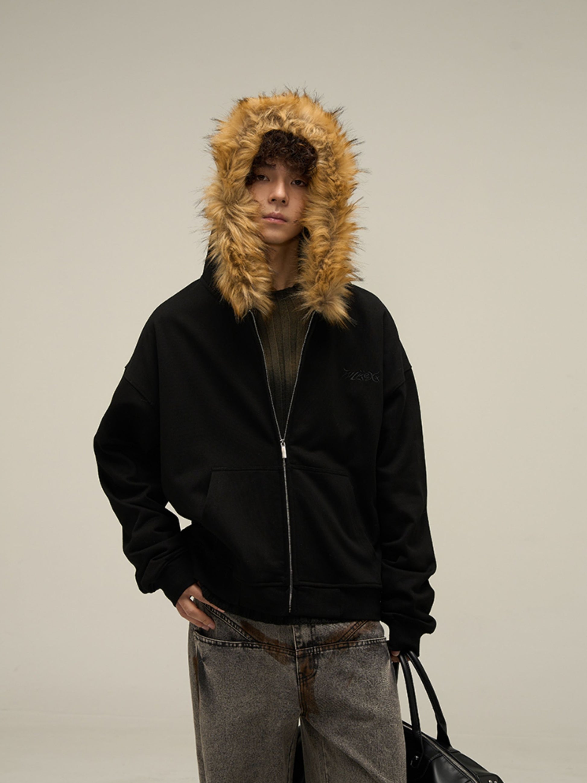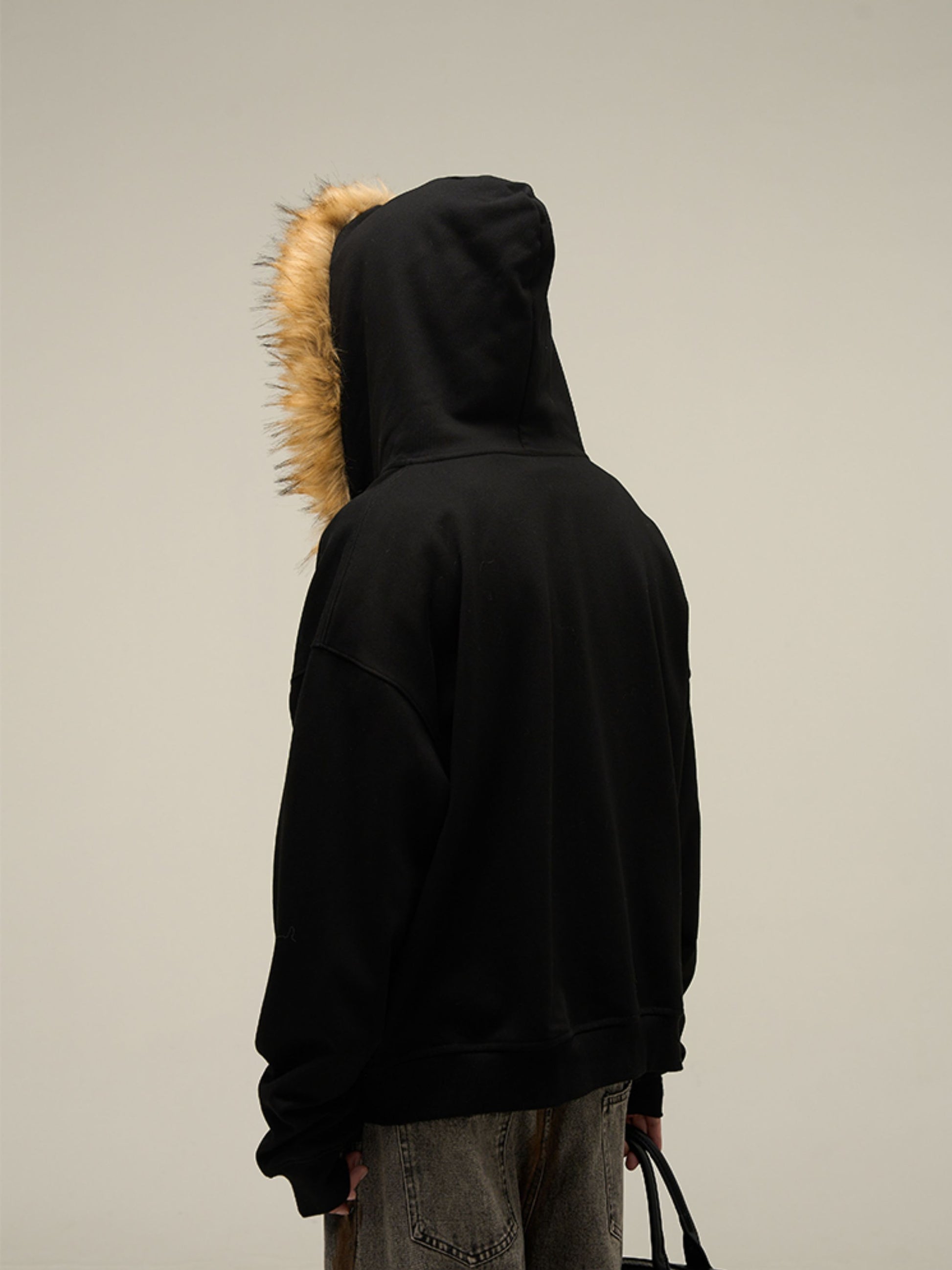 「ユニセックス」ファー付きフードゆったりパーカー TK0334