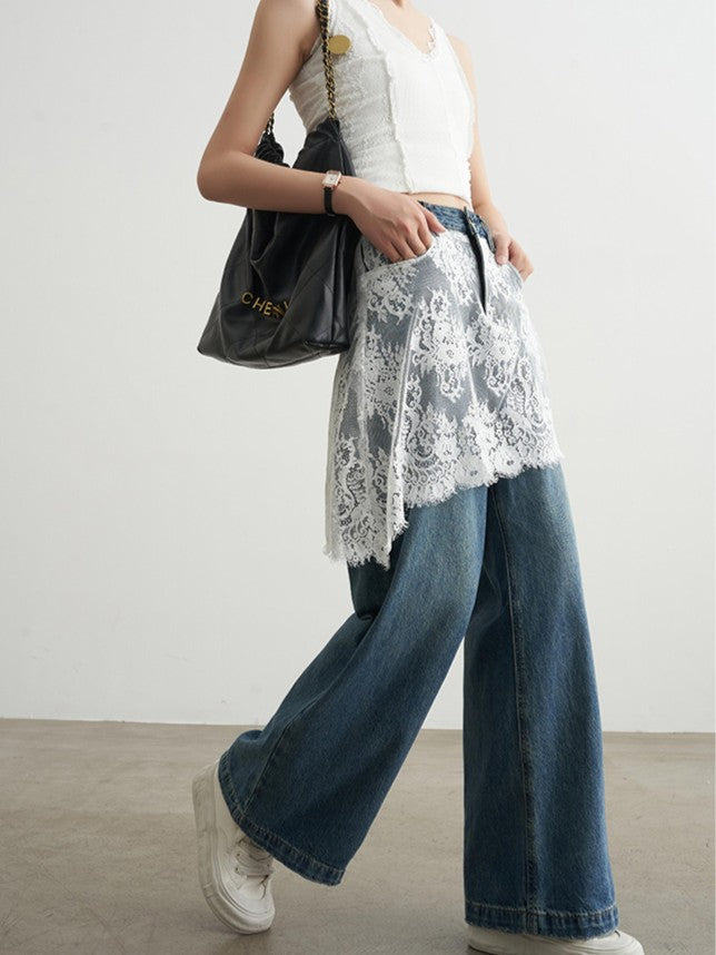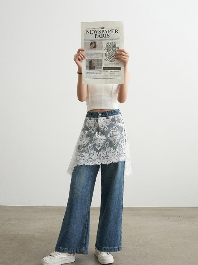 レースレイヤード風 ワイドデニムパンツ TK0310