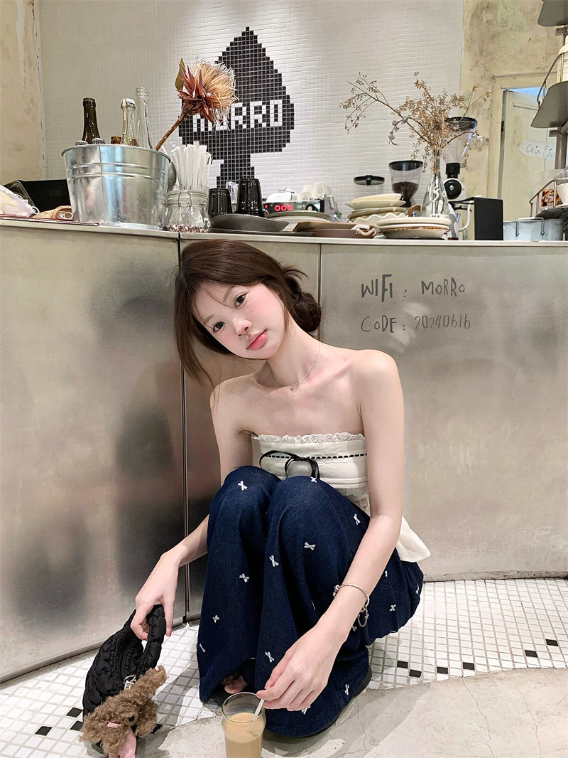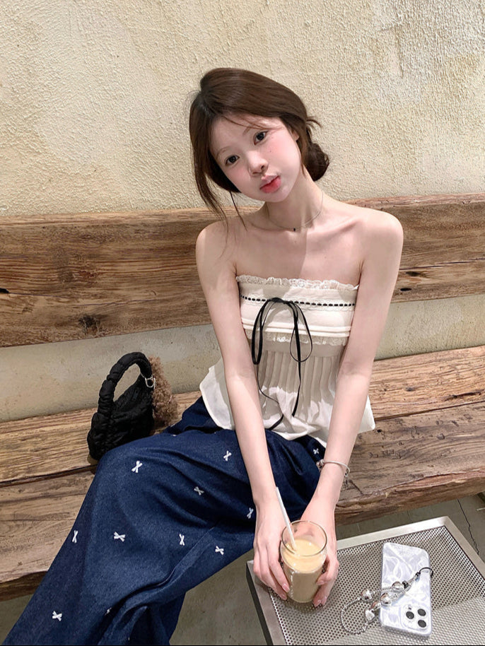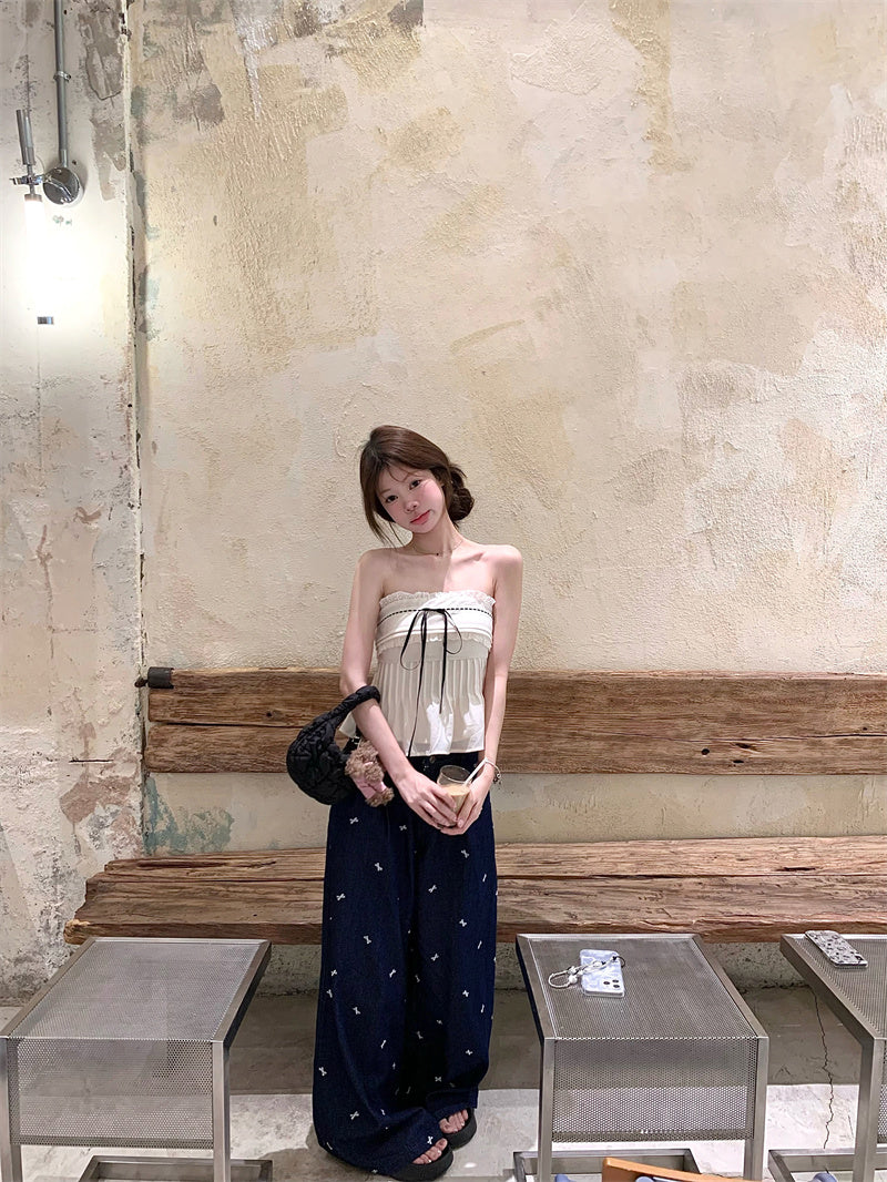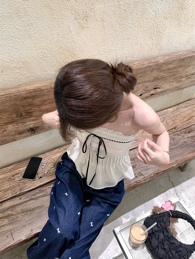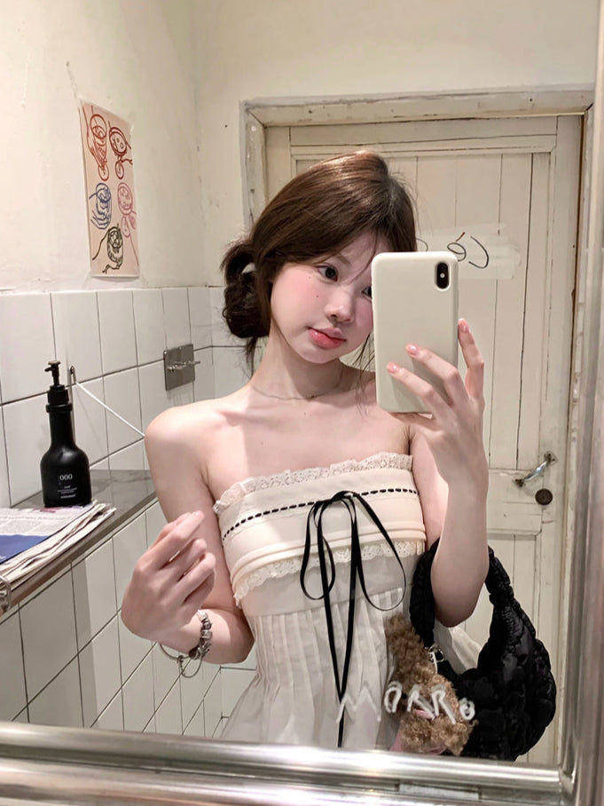 商品説明:フェミニンなレースをあしらったデザイン性のあるビスチェ風トップス。ウエストを引き締めるシルエットで、スタイルアップ効果も。夏の主役アイテムにぴったり。