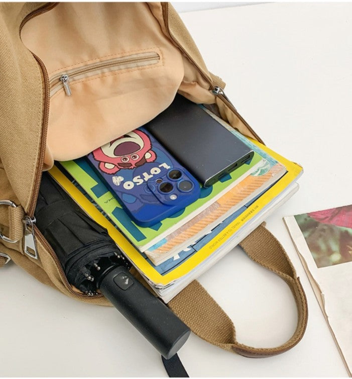 商品説明:ヴィンテージ感漂うウォッシュキャンバス素材の2WAYバッグ。ストラップ調整でリュック・ショルダーとして使用可能。A4雑誌や書類がすっきり収まり、通学や通勤、週末のお出かけにもぴったり。軽量で持ち運びやすく、内側にはジッパー付きポケットで小物も安心収納。