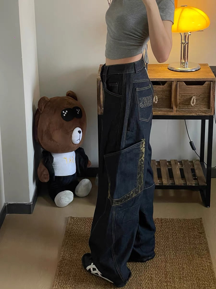 商品説明:ヴィンテージ感あふれるレオパード切り替えが印象的なワイドデニムパンツ。ストリートムードを引き立てる大胆なデザインで、ラフに穿くだけで存在感のあるスタイルに。ゆったりシルエットで動きやすく、男女問わず楽しめるユニセックス仕様。季節を選ばず着回せる、ストリートコーデに欠かせない1本です。