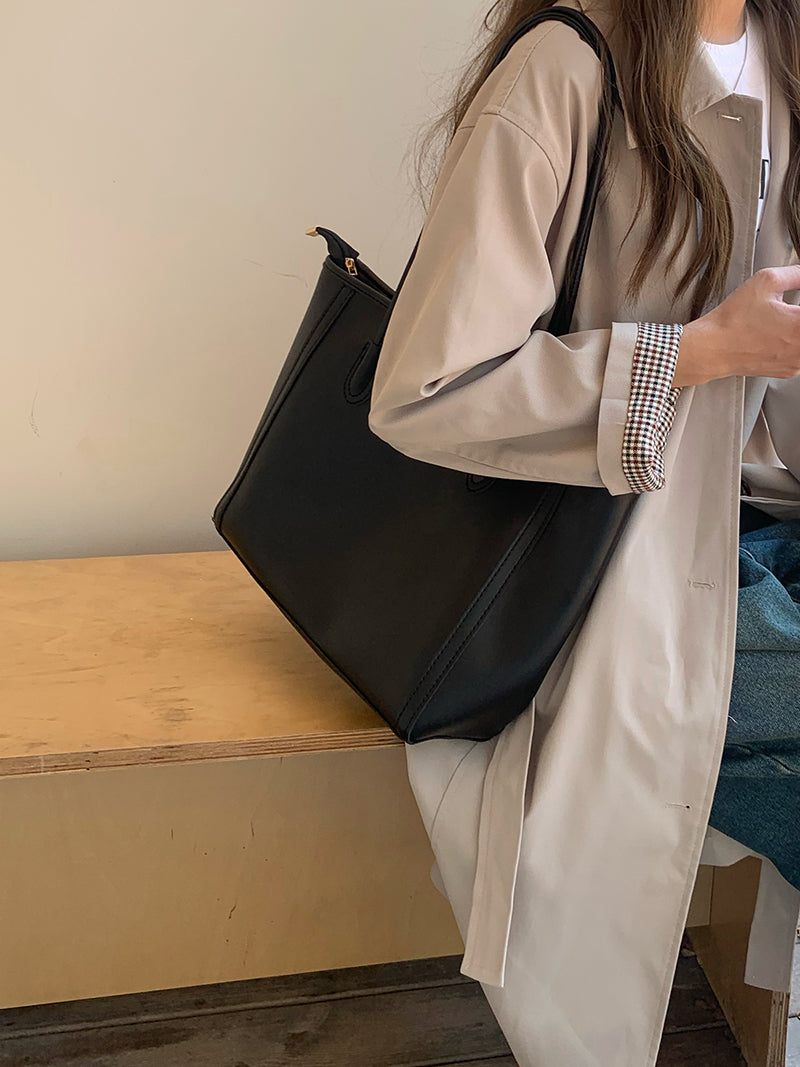 商品説明:内側にファスナー付きポケットあり。容量はA4サイズの教科書、タブレット、スマートフォン、財布、モバイルバッテリー、水筒などを収納可能。