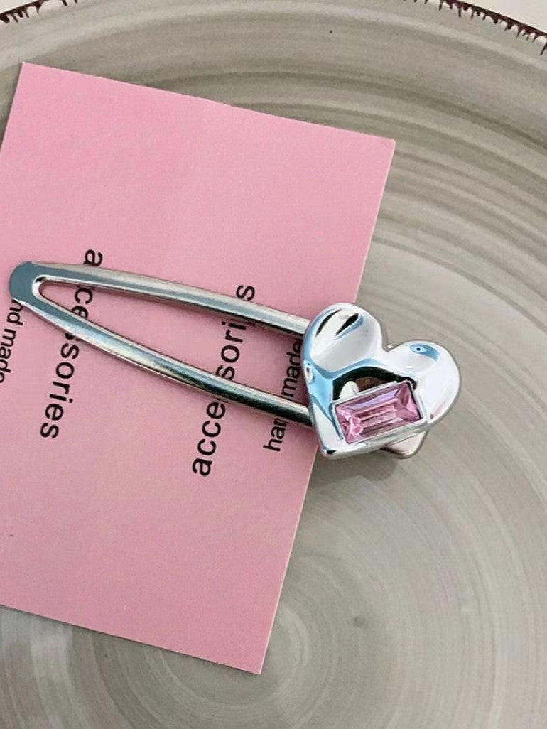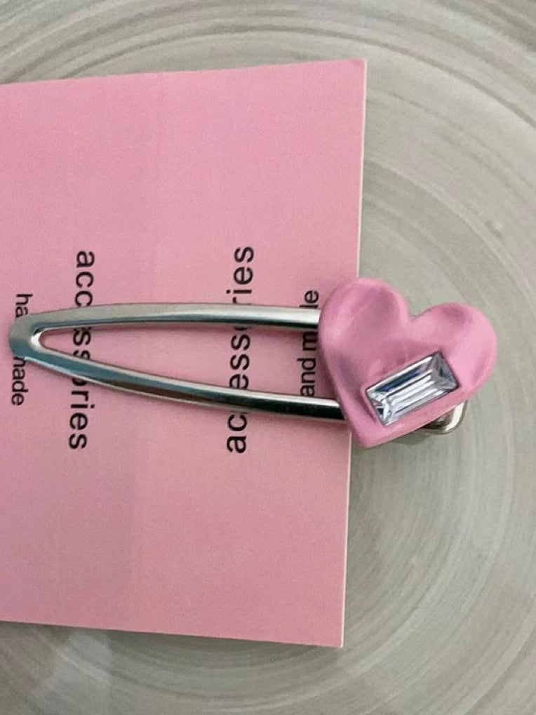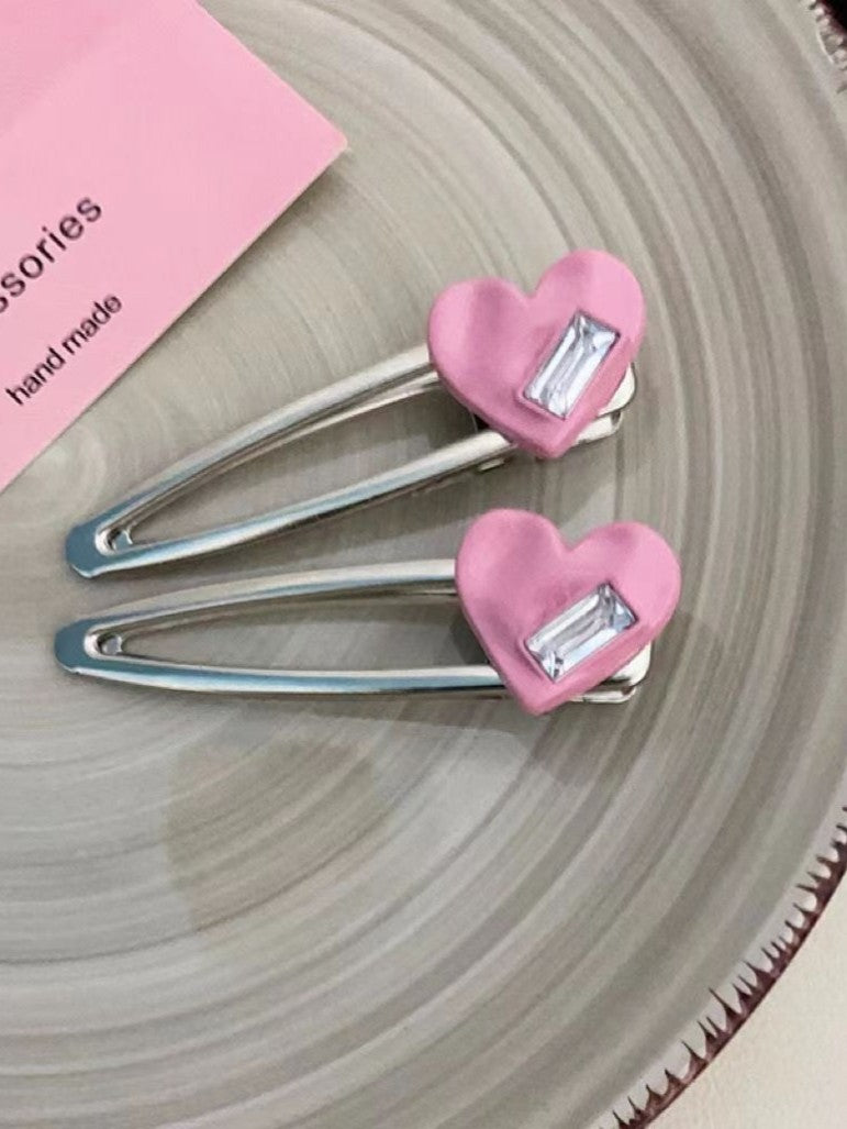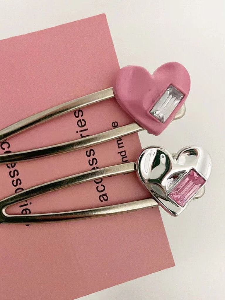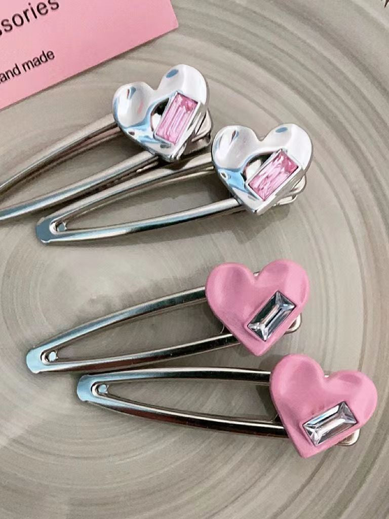 商品説明:キラキラ輝くハート型ストーン付きのヘアピン2点セット。前髪やサイドに付けるだけで甘めガーリースタイルに。夏のお出かけにぴったり。
