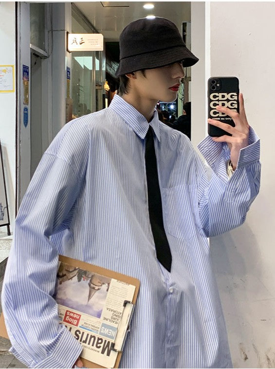 商品説明:夏にぴったりの薄手のストライプシャツ。長袖で、インス風のカジュアルなデザインが特徴。ゆったりとしたシルエットで、トレンド感溢れる、どんなコーデにも最適な一枚です。