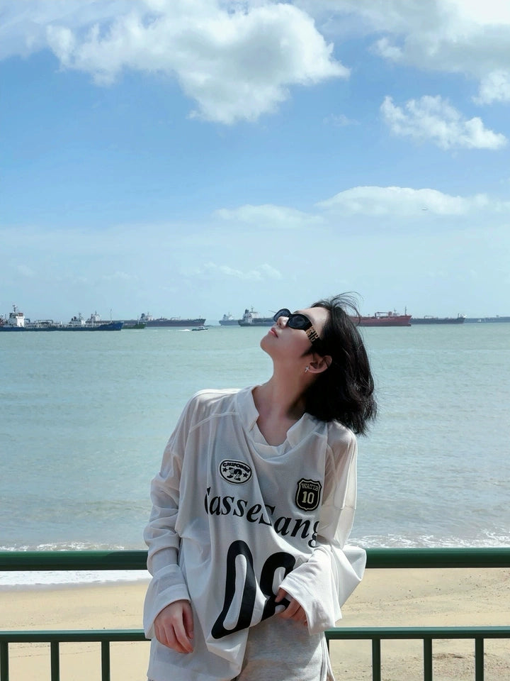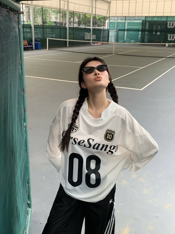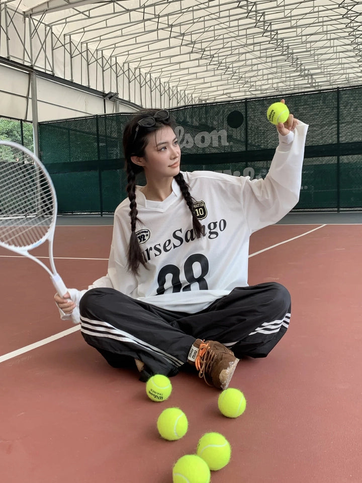 商品描述:シンプルでスポーティなデザインの長袖Tシャツジャージです。軽くて通気性が良く、日常のカジュアルスタイルや軽い運動にも最適なアイテムです。