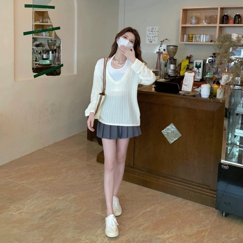 商品説明:夏にぴったりな薄手のレース編みカーディガン。Vネックデザインで、重ね着に最適。UVカット効果があり、日差しから肌を守ります。リラックス感のあるシルエットで、カジュアルからリゾートスタイルまで幅広く活躍します。