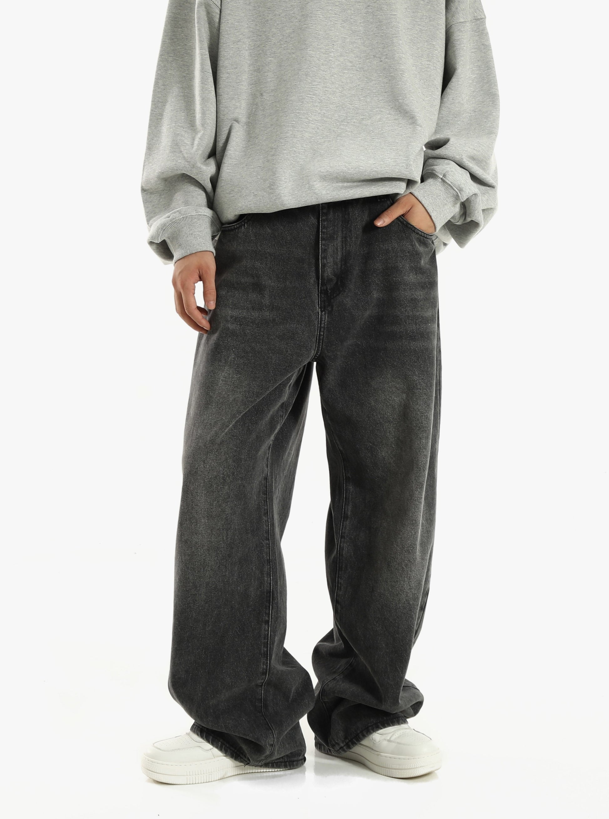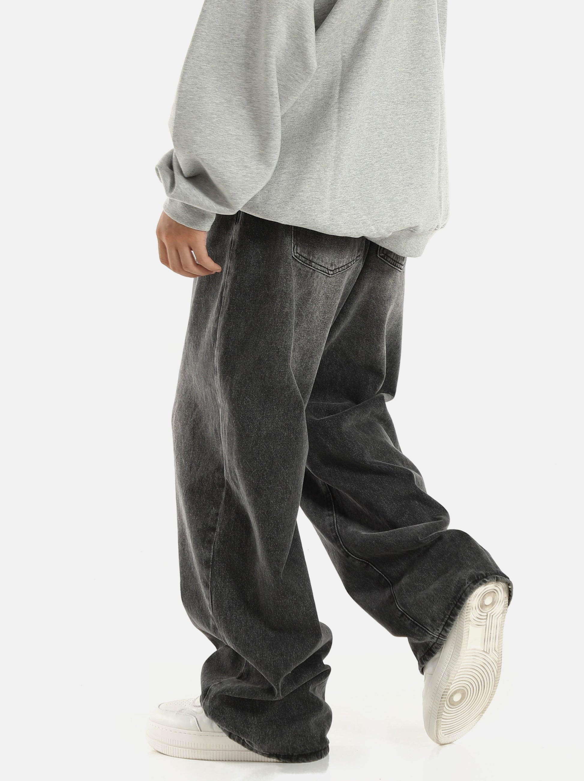 商品説明:スモーキーグレーの高腰デザインで、ストレートかつワイドなシルエットが特徴のデニムパンツです。男女兼用で、ドレープ感のある生地が脚長効果を発揮。カジュアルからストリートスタイルまで幅広く活躍します。