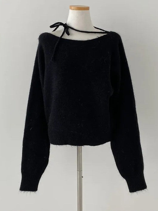 商品説明:フレンチシックなモヘアホルターニット。ふんわり柔らかく、首元を美しく魅せる。ゆったりシルエットで幅広く着回せます。
