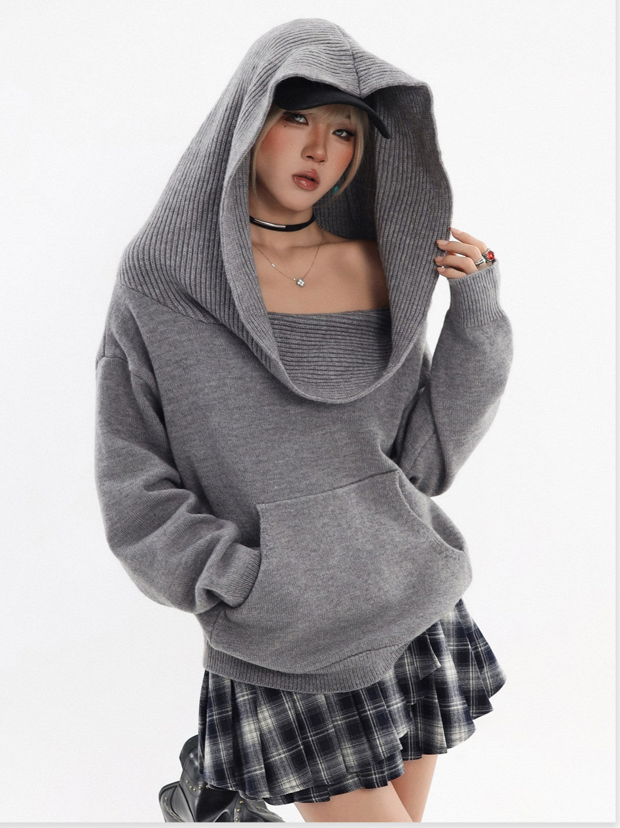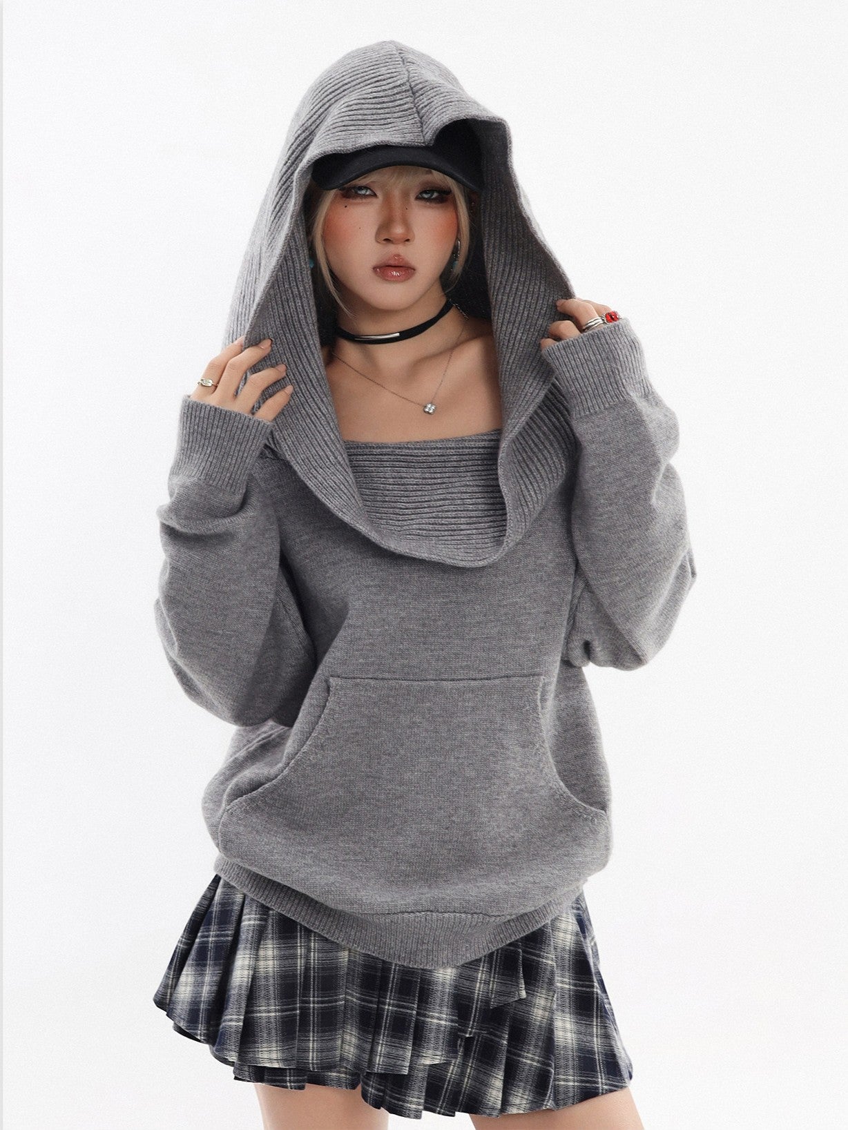 商品説明:柔らかな風合いのニット素材を使用し、女性らしさを引き立てるデザインに仕上げた2WAYニットトップス。肩を落としてオフショルとして着用すれば、デコルテラインがきれいに見え、抜け感のあるスタイリングに。フードを被れば、カジュアルなニットフーディーとしても楽しめます。
