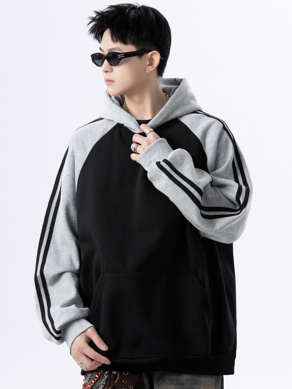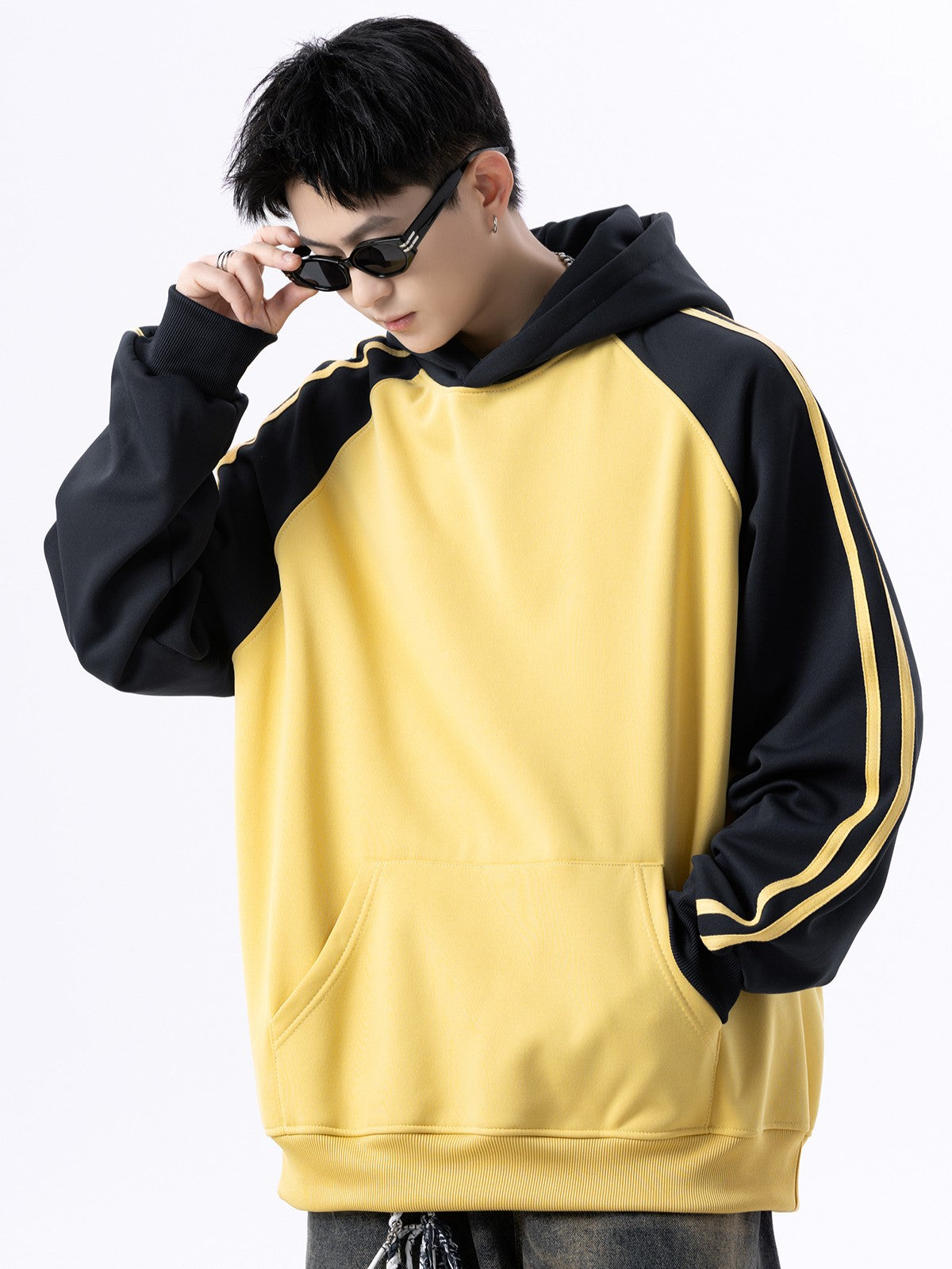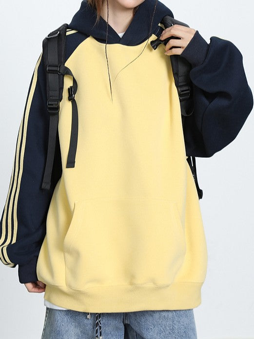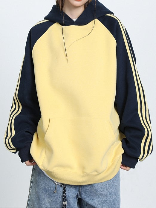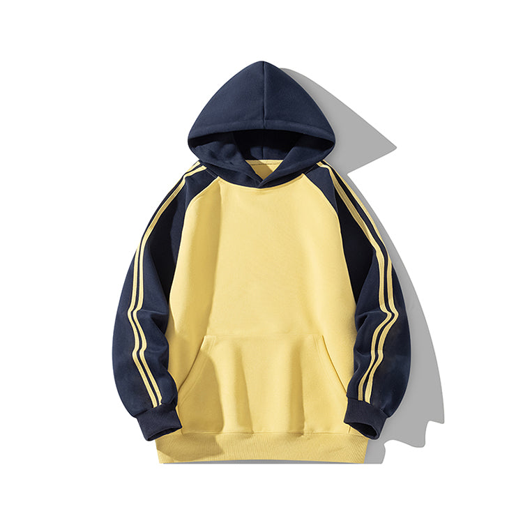 商品説明:アメリカンカジュアルなラグラン袖デザインのフーディー。グレー・イエロー・ブラックの3色展開で、男女問わず楽しめるユニセックス仕様。