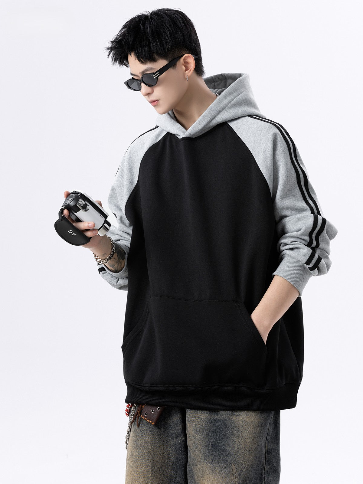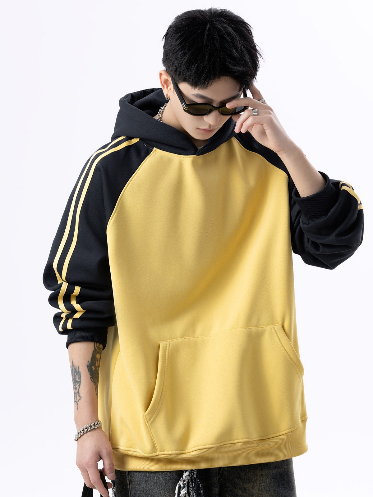 商品説明:アメリカンカジュアルなラグラン袖デザインのフーディー。グレー・イエロー・ブラックの3色展開で、男女問わず楽しめるユニセックス仕様。素材は撥水性のあるポリエステル100%を使用し、軽やかで快適。ゆったりシルエットで街着からキャンパススタイルまで幅広く活躍。
