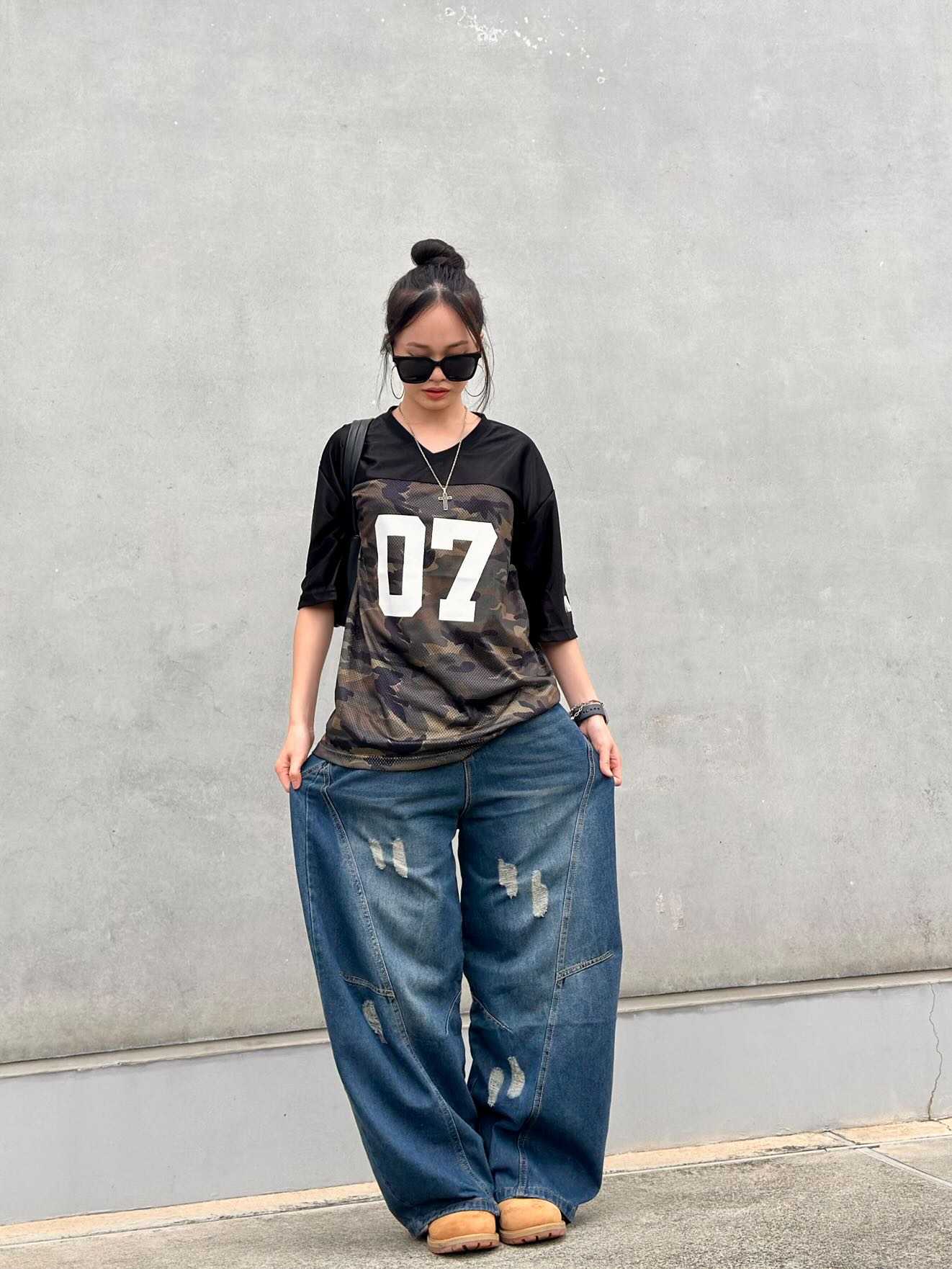 商品説明:存在感抜群のワイドデニムパンツ。大胆なダメージ加工とヴィンテージ風の色落ちが魅力。ハイウエストで脚長効果も◎。ユニセックスでもおすすめ。手作業によるダメージ加工を施しており、破れの位置や形には個体差がございます。掲載写真と多少異なる場合がございますので、あらかじめご了承ください。