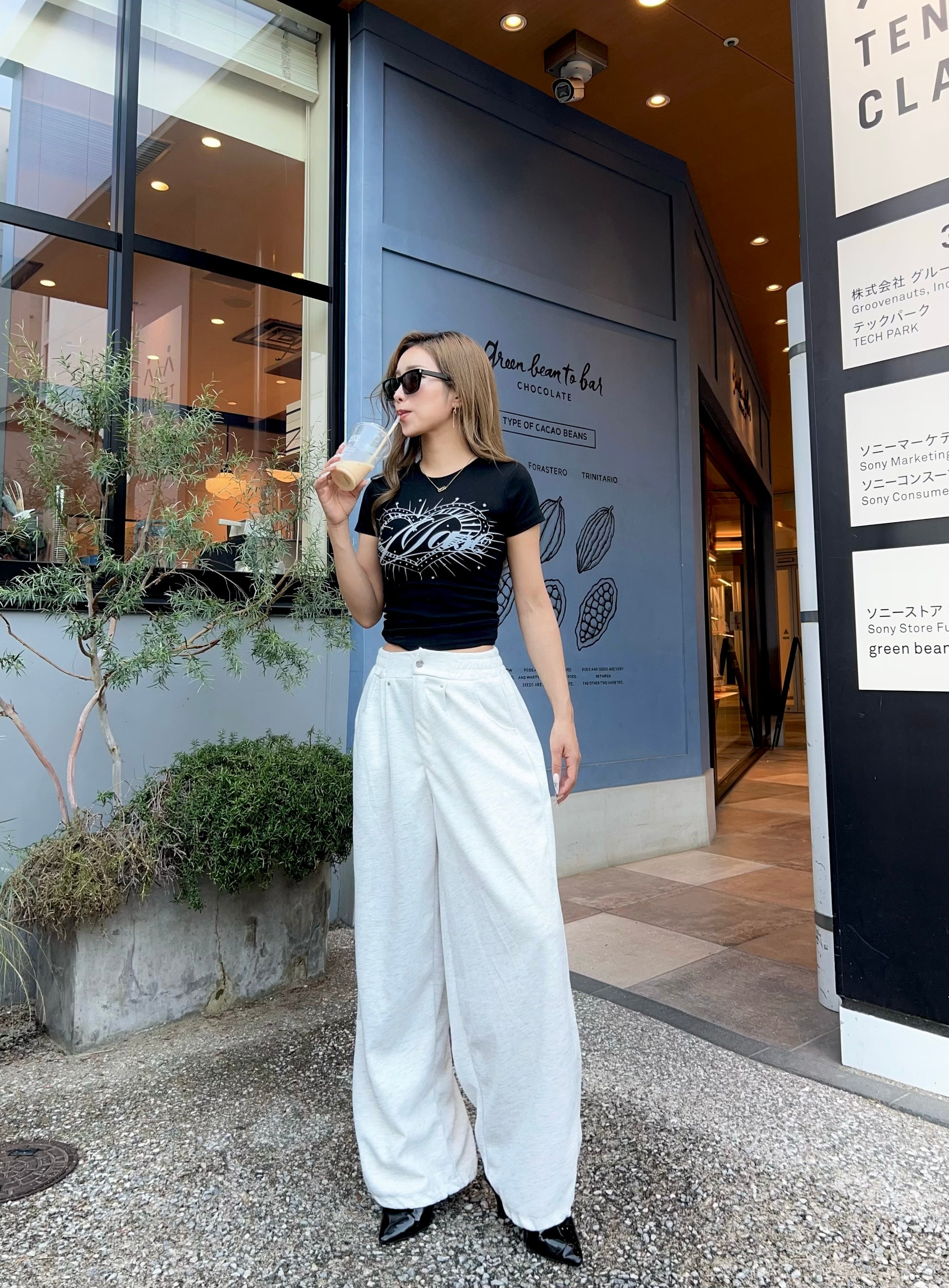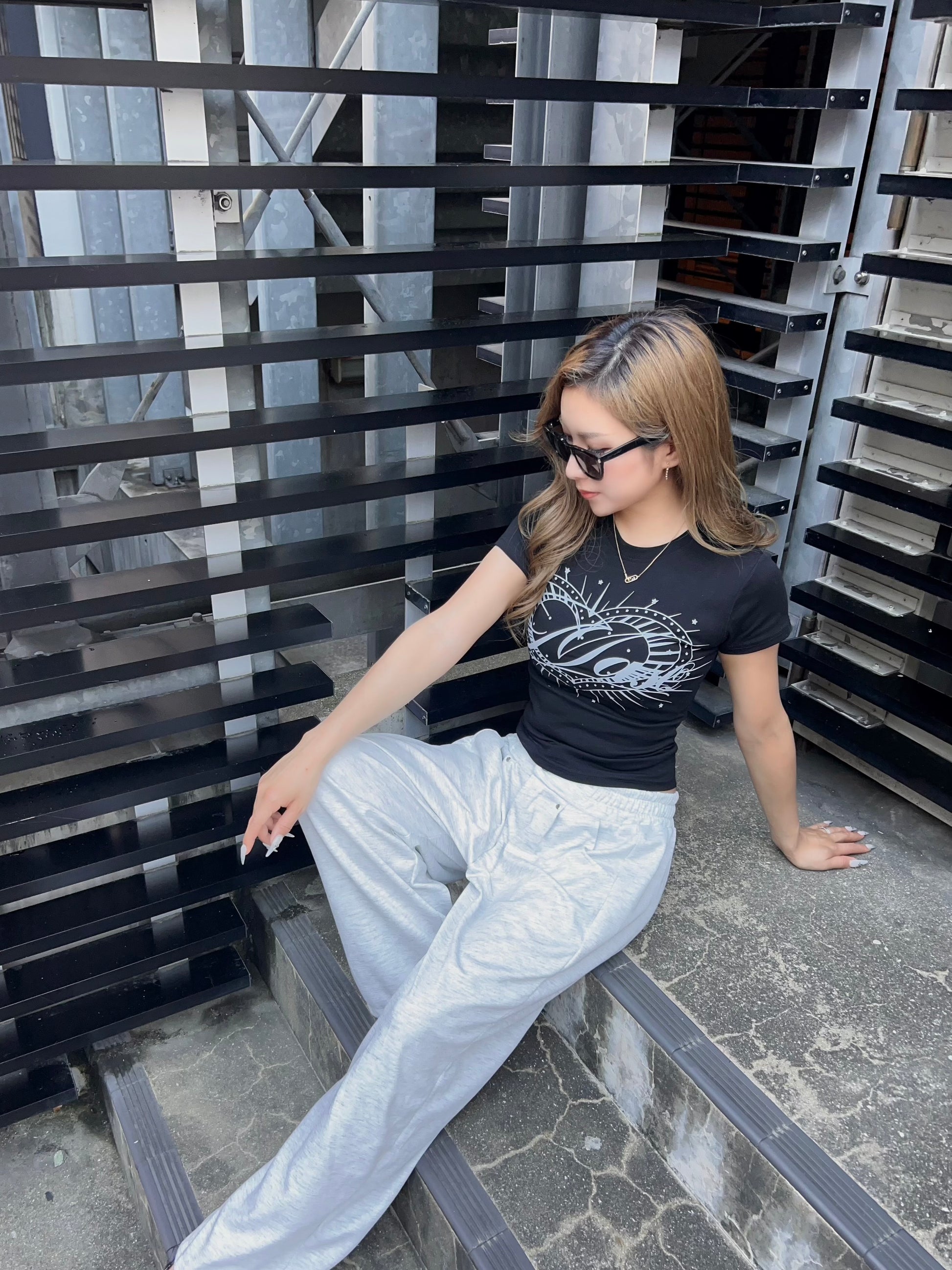 商品説明:ヴィンテージ感漂うハート柄プリントの半袖Tシャツ。夏にぴったりのスリムフィットで、黒色のショート丈デザインが特徴。