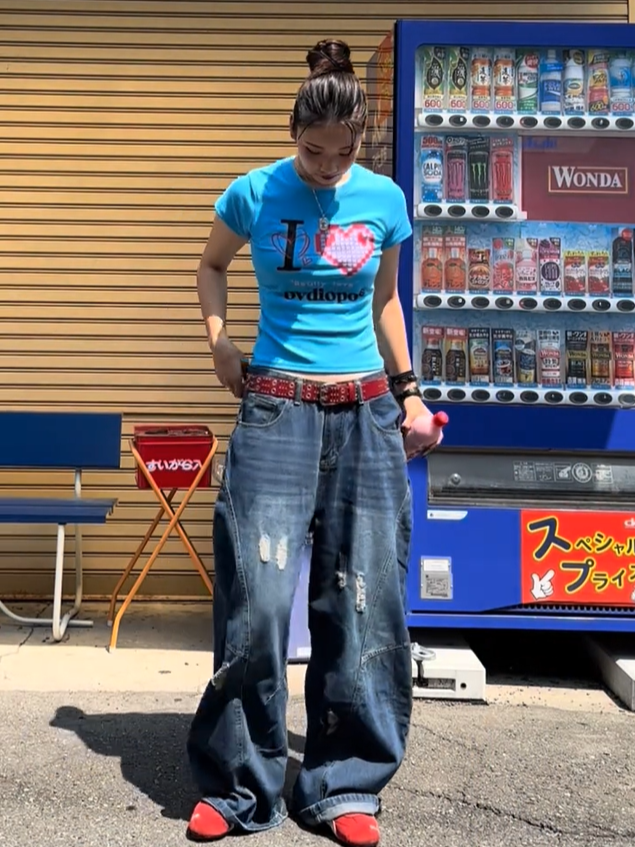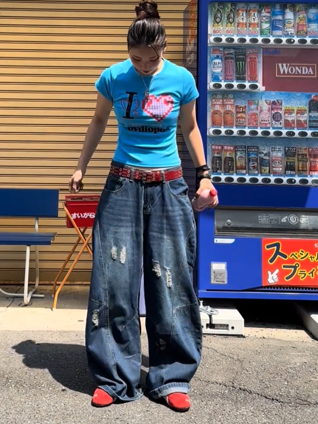 商品説明:存在感抜群のワイドデニムパンツ。大胆なダメージ加工とヴィンテージ風の色落ちが魅力。ハイウエストで脚長効果も◎。ユニセックスでもおすすめ。手作業によるダメージ加工を施しており、破れの位置や形には個体差がございます。掲載写真と多少異なる場合がございますので、あらかじめご了承ください。
